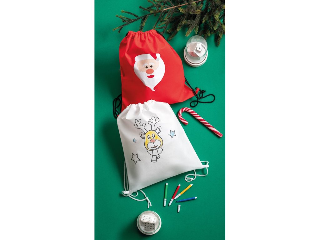 batůžek z netkané textilie s obrázkem Santy, rozměry 300 x 350 mm