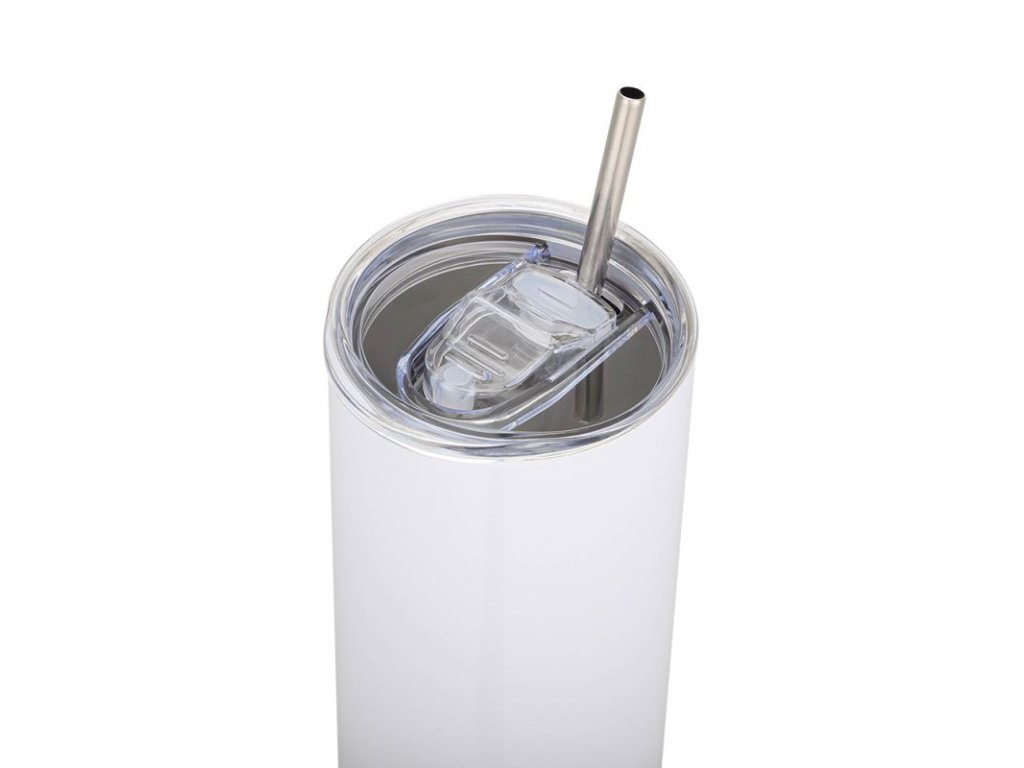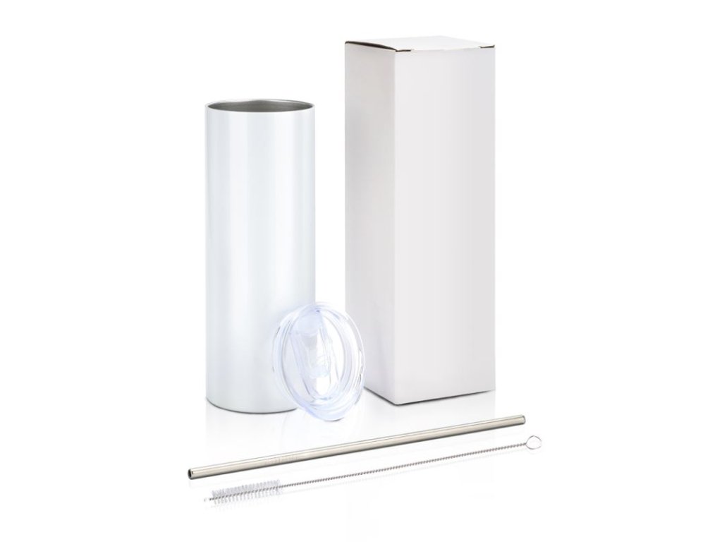 Outdoorová sublimační cestovní lahev z nerezové oceli 304 v bílé barvě. S vlastním potiskem