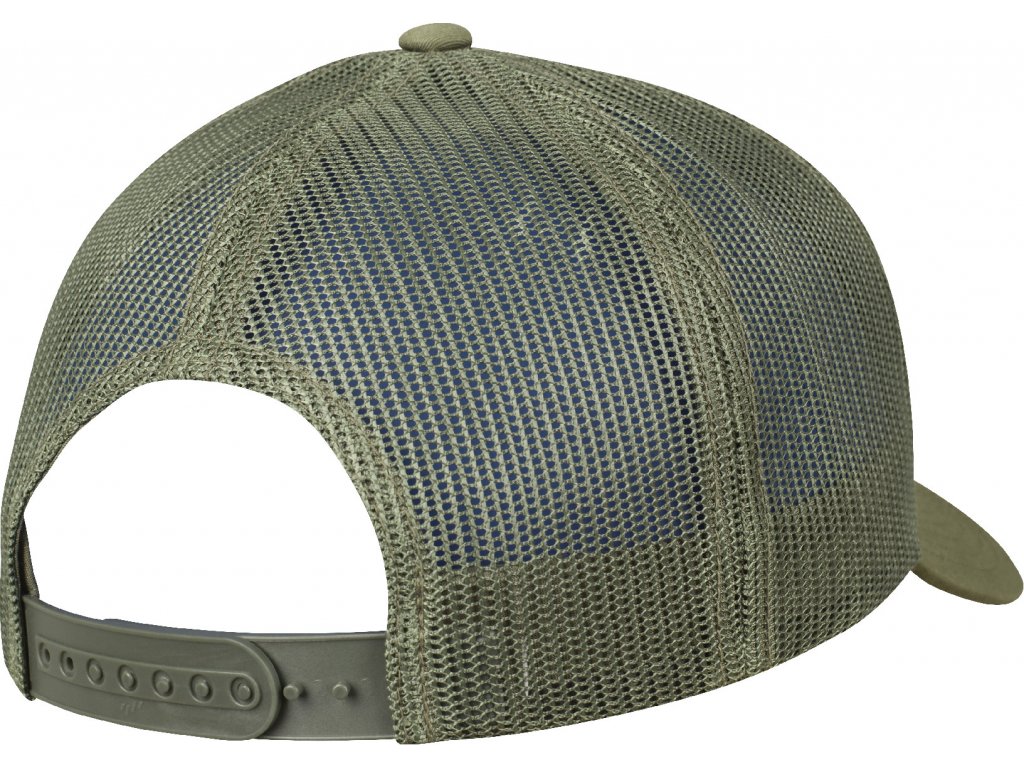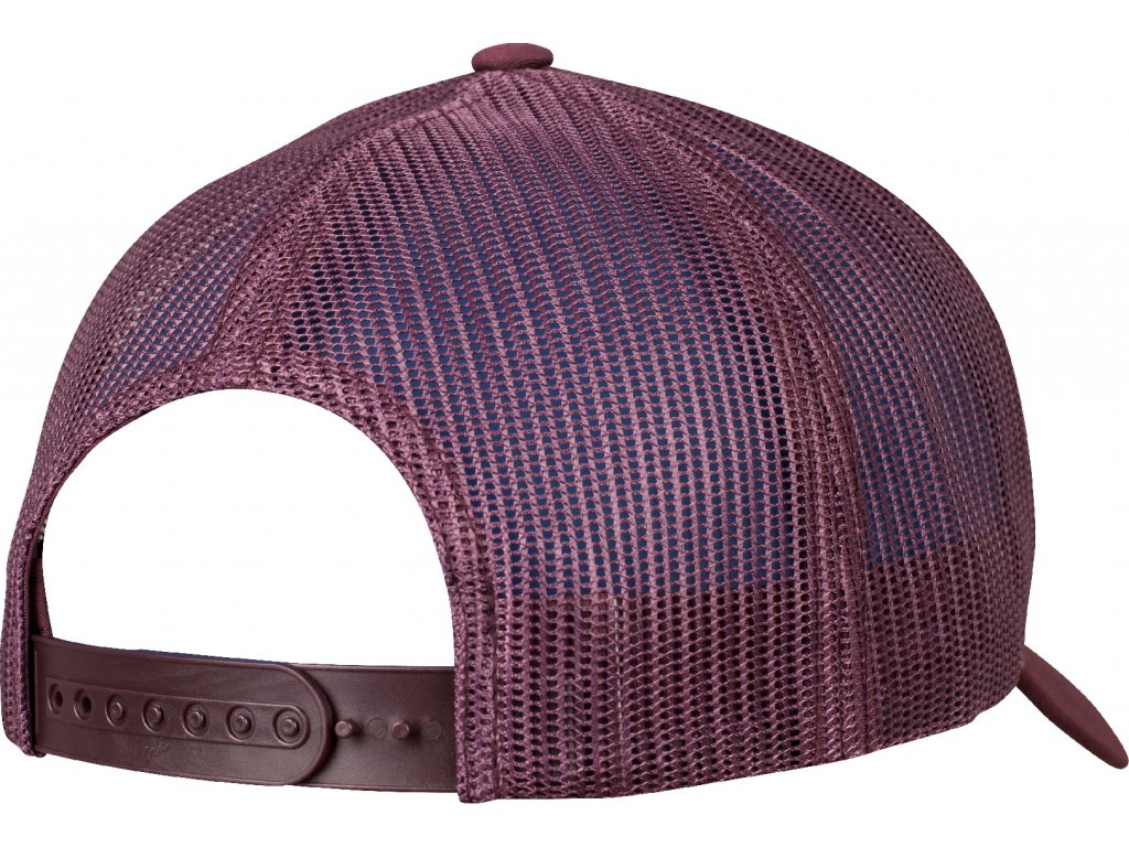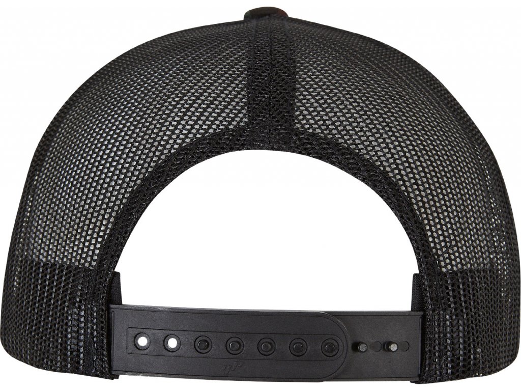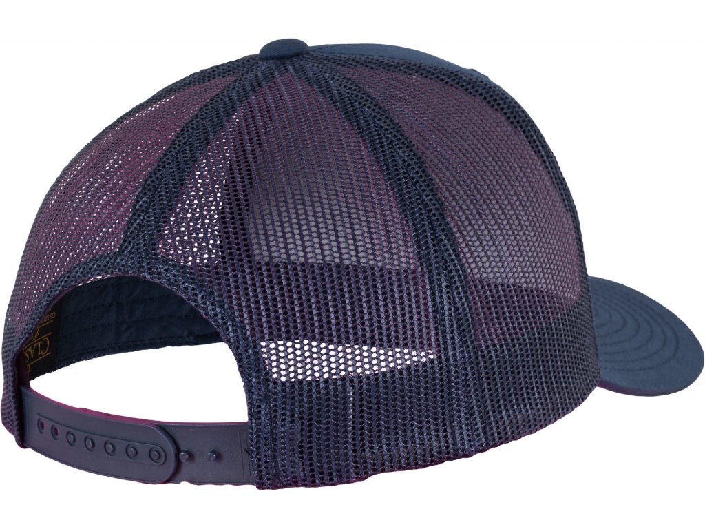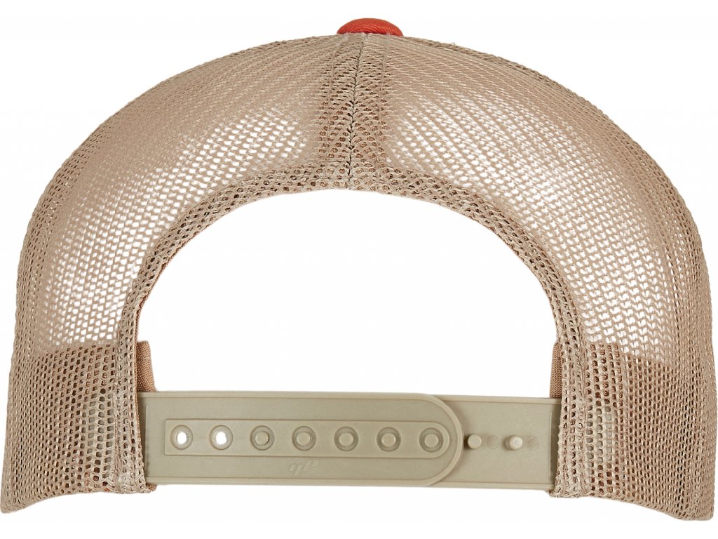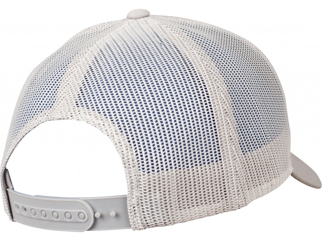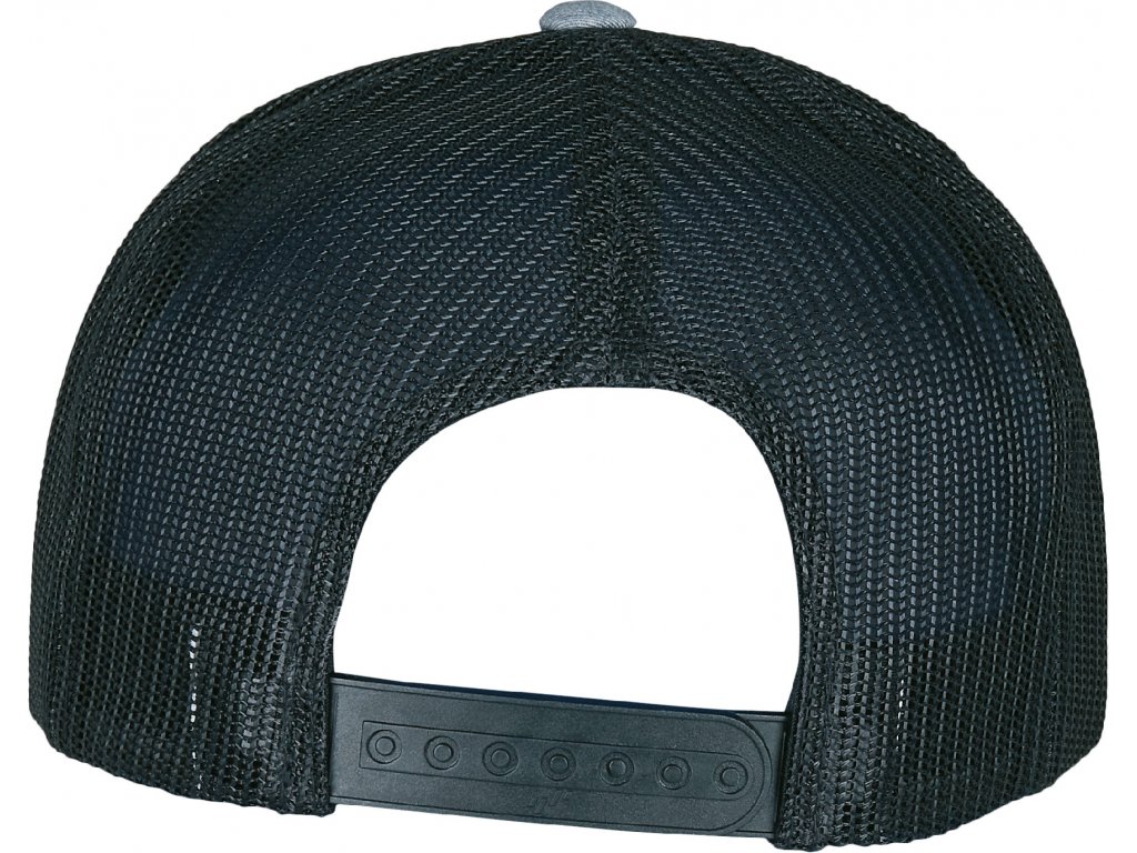 8 ozdobných švů na kšiltu, zadní strana ze síťoviny, 6 obšitých větracích otvorů, plastové zapínání tón v tónu
