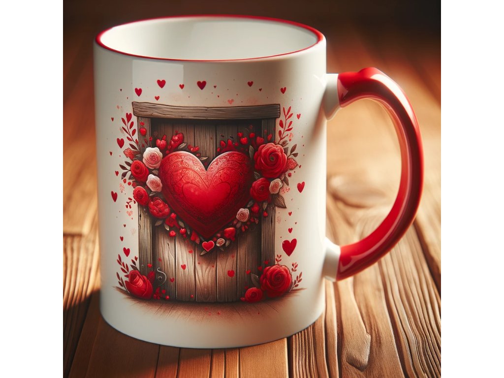 Magický červený keramický hrnek o objemu 330 ml, potisk vlastním obrázkem nebo fotografií, vhodný dárek k Valentýnu. Po nalití teplého nápoje zbělá a odkryje obrázek.