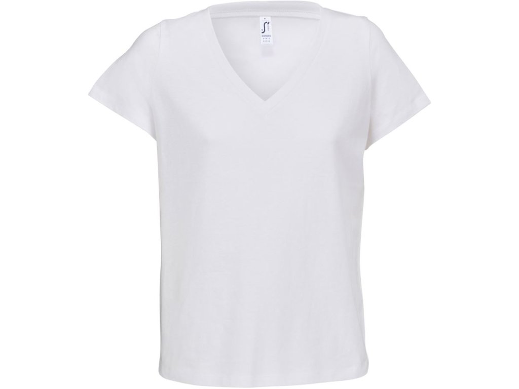 Dámské bavlněné tričko s hlubokým výstřihem do V a moderním střihem bez bočních švů. Příjemný materiál 150 g/m².