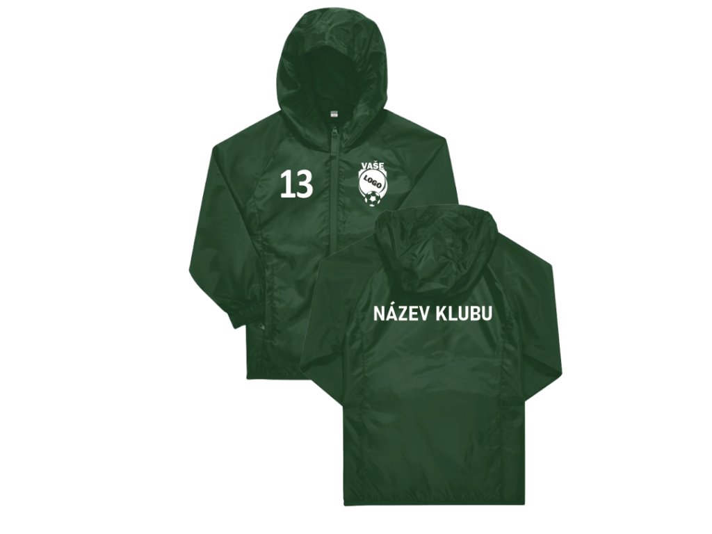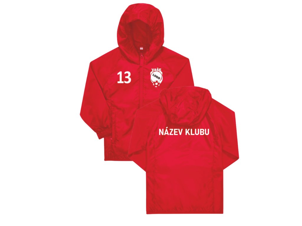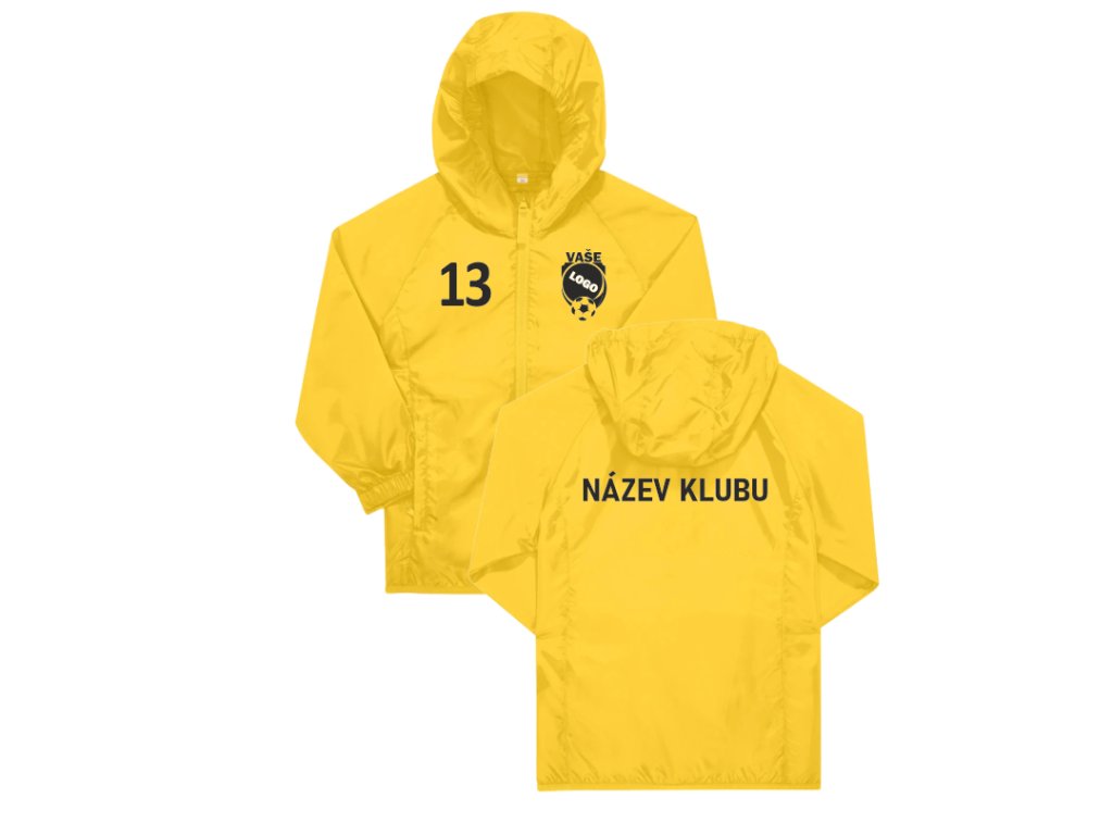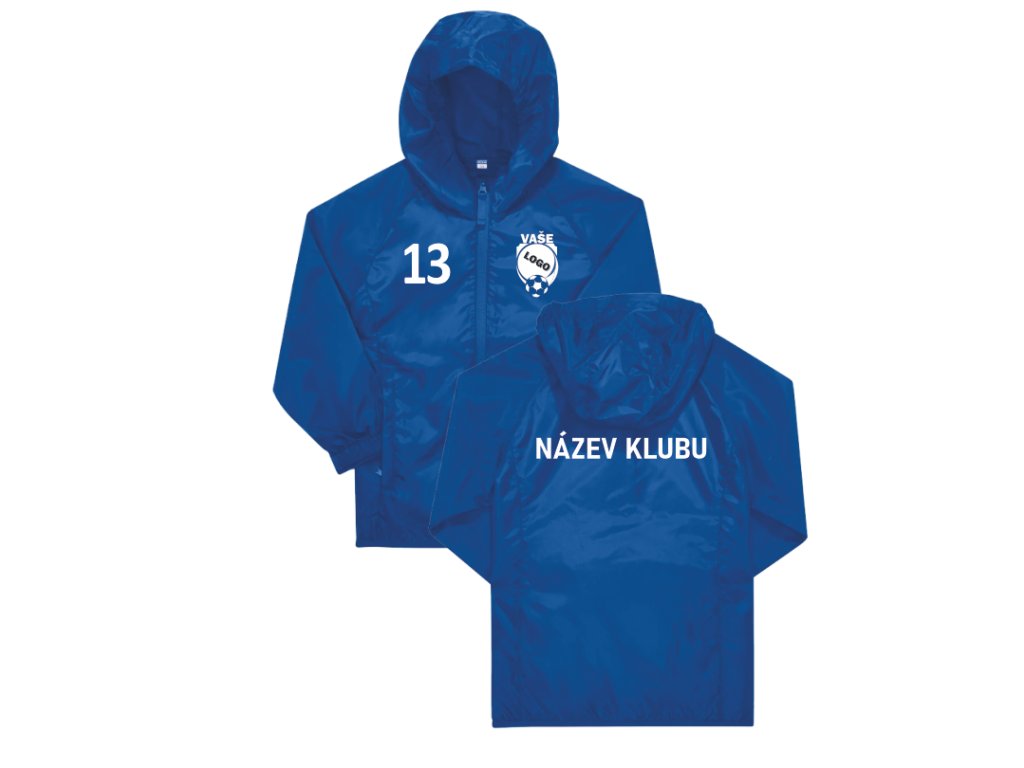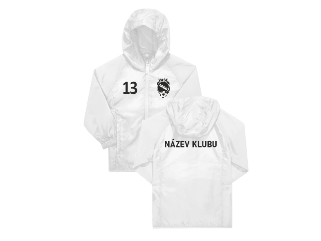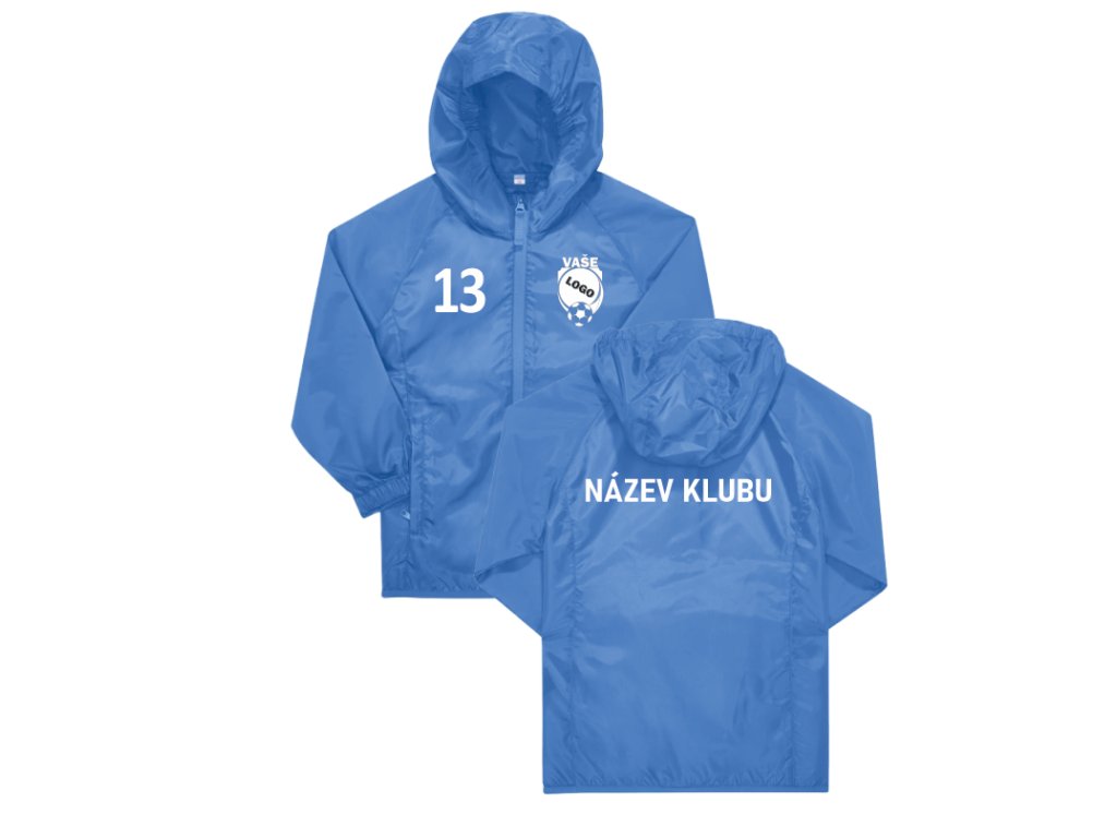 Stylová dětská klubová větrovka s potiskem v ceně. Lehká, větruodolná, sbalitelná do vlastní kapsy, ideální pro sportovní a týmové aktivity.