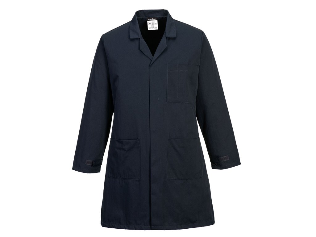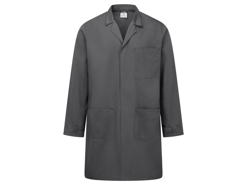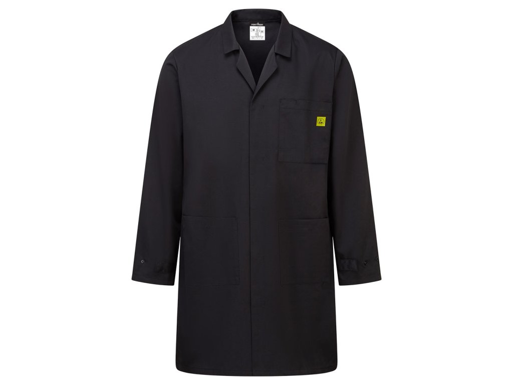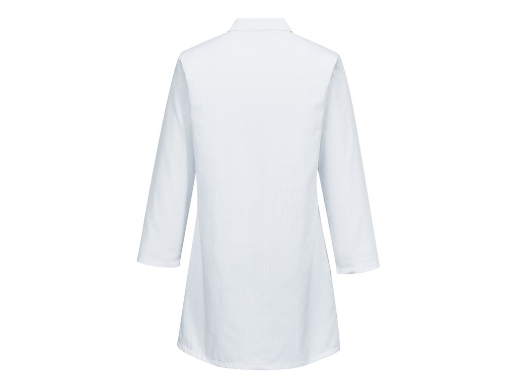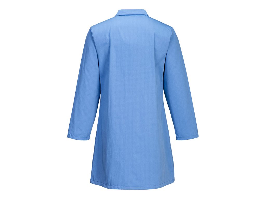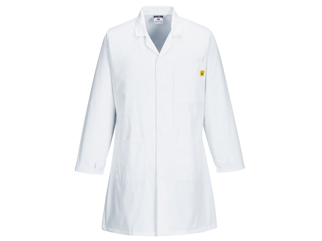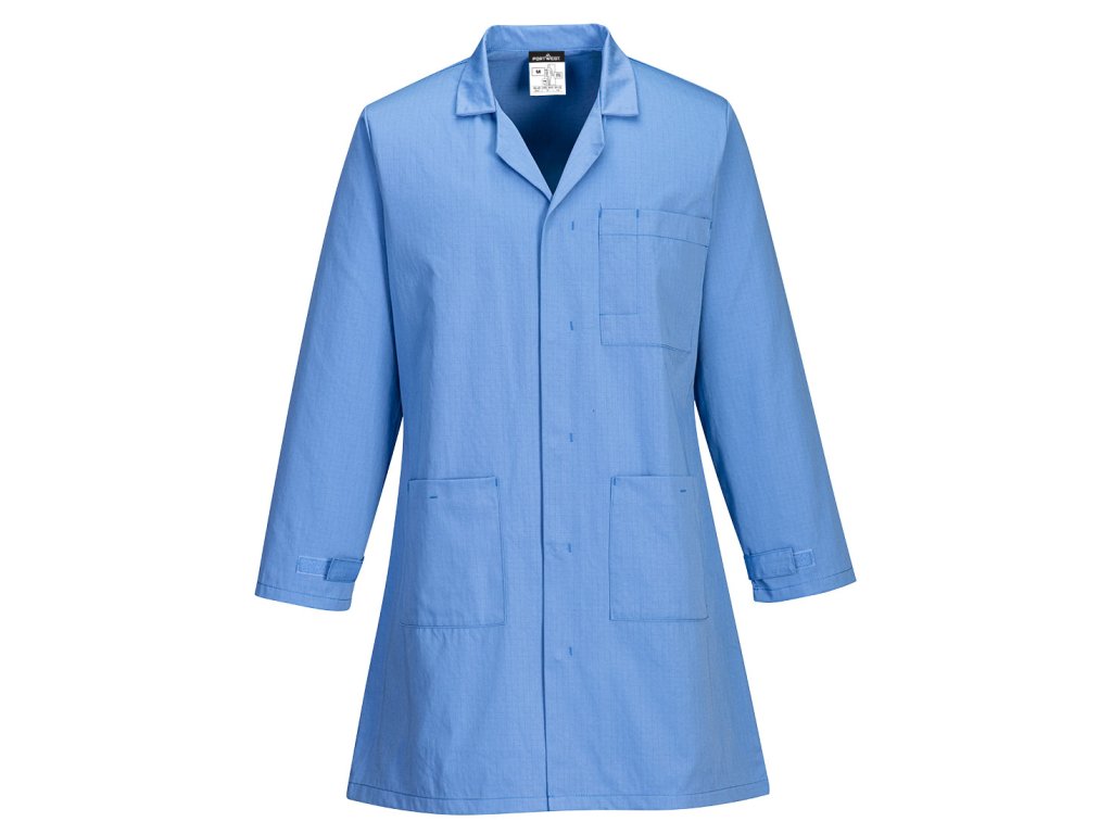 ESD antistatický plášť pro profesionální použití v ESD pracovním prostředí. Splňuje normu EN 61340‑5‑1, má bezpečný design bez odkrytých kovových částí a praktické kapsy.