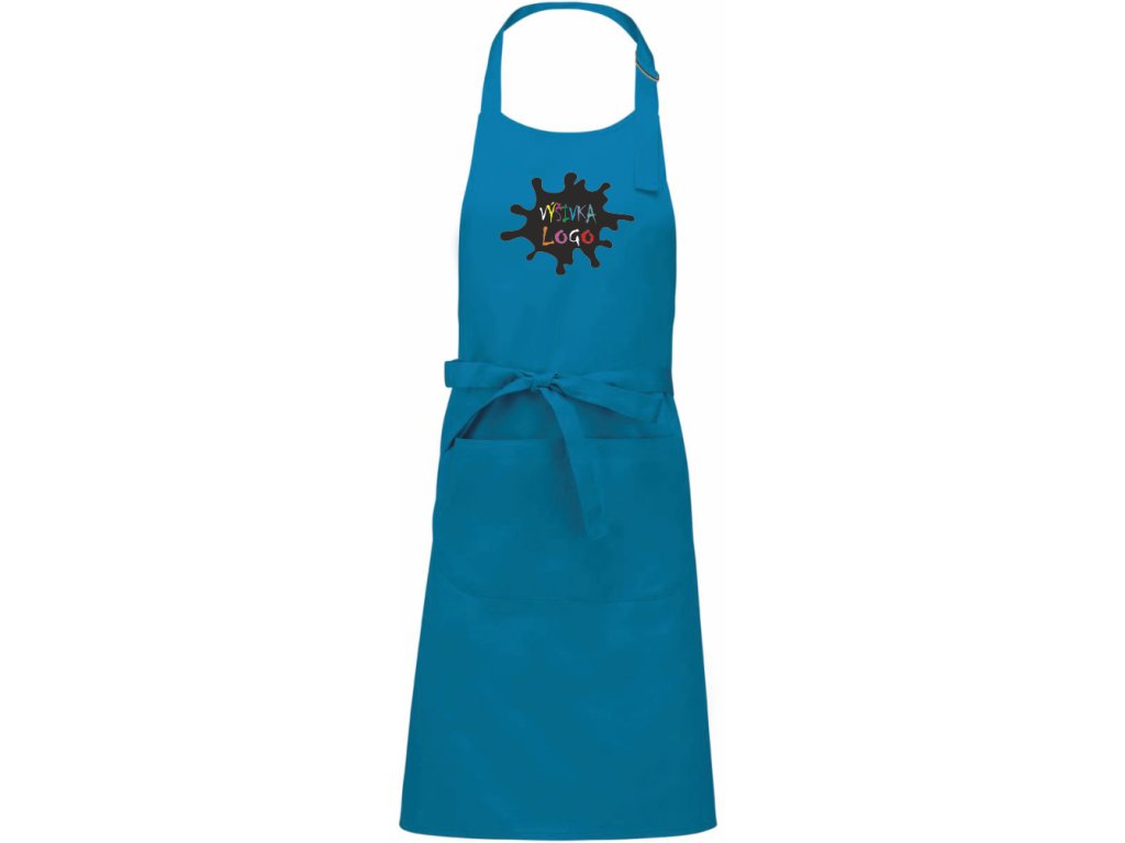 Odolná gastro zástěra Sommelier v mnoha barvách. Zvolte potisk nebo výšivku textu či loga (A5). Má kapsu se 2 přihrádkami a nastavitelnou smyčku za krk.