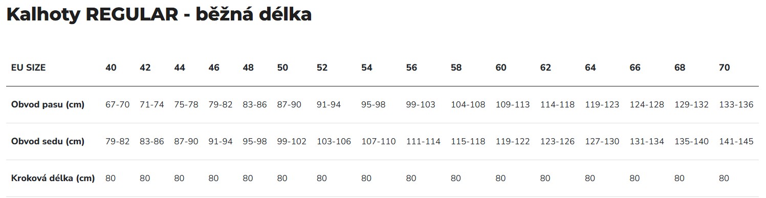- Úprava délky: možnost prodloužení nohavic o 2,5 cm