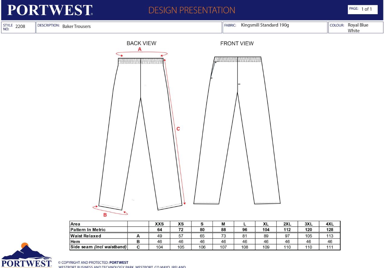 Portwest Kalhoty pekařské