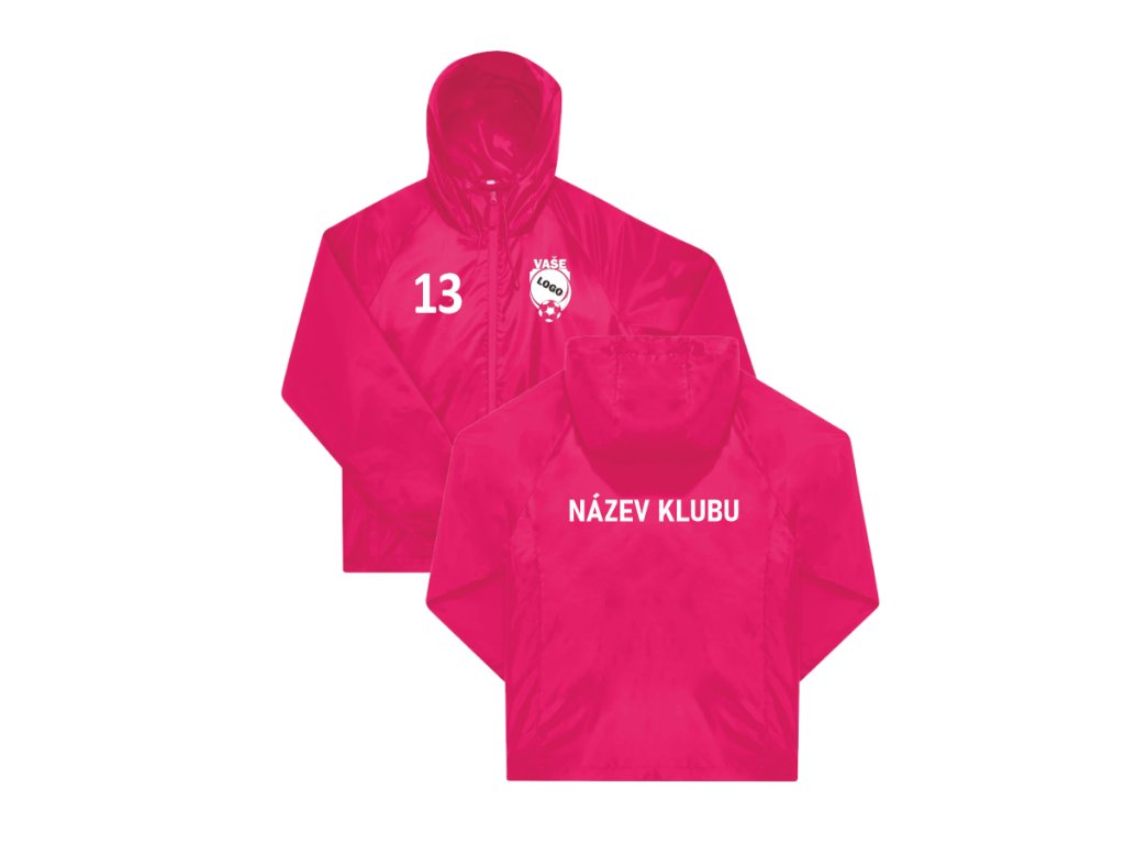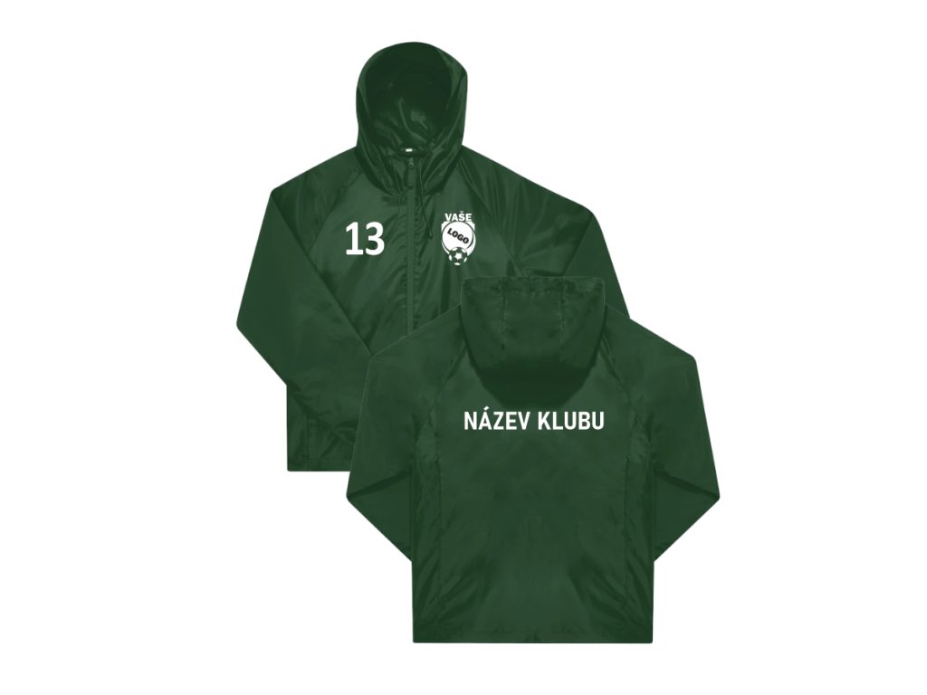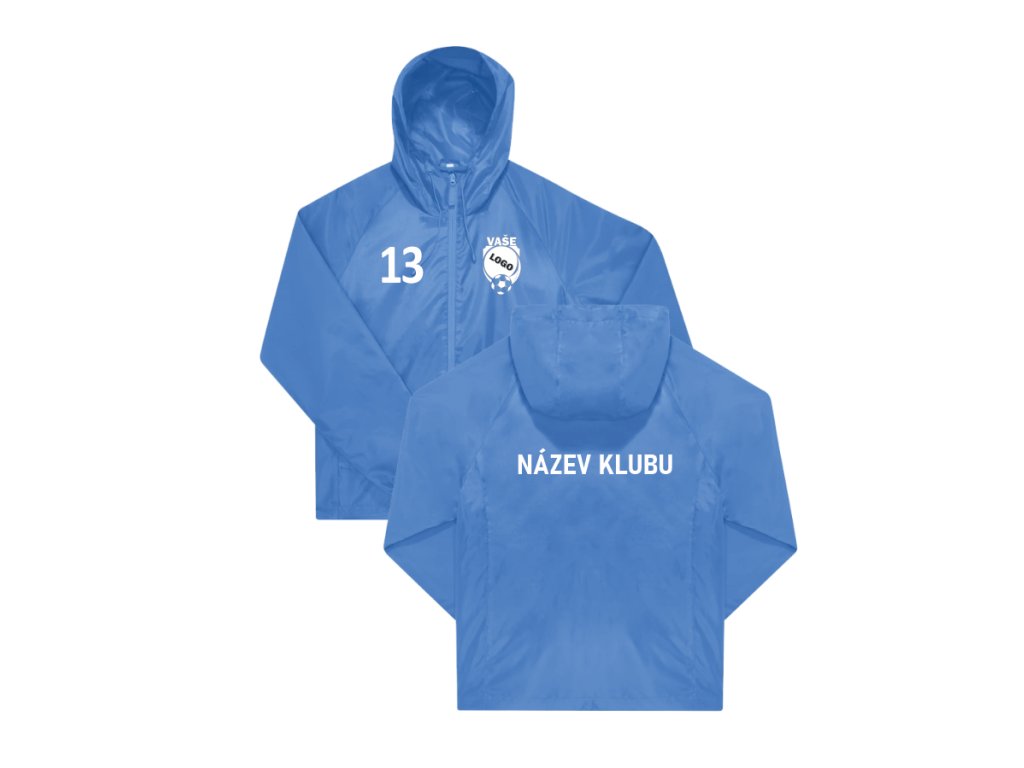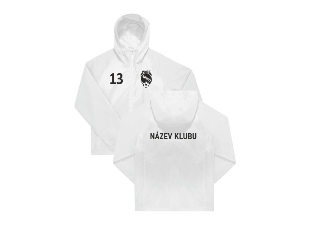 Stylová unisexová klubová větrovka s potiskem v ceně. Lehká, větruodolná, sbalitelná do vlastní kapsy, ideální pro sportovní a týmové aktivity.