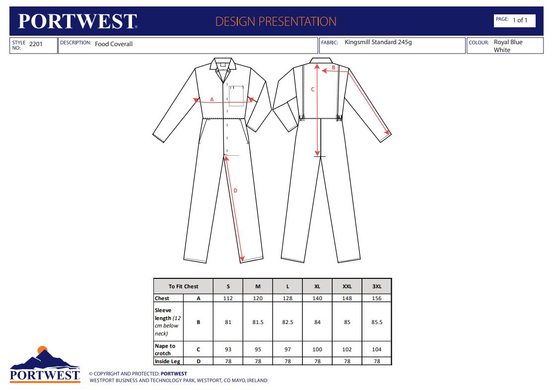 Hygienická pracovní kombinéza určená pro potravinářský průmysl, vyrobená z odolné polybavlny Kingsmill, která splňuje náročné požadavky na čistotu, pohodlí a dlouhou životnost.