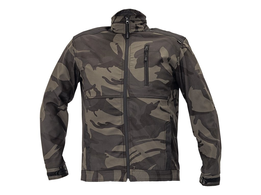 softshellová bunda se stojáčkem, atraktivní design kamufláž