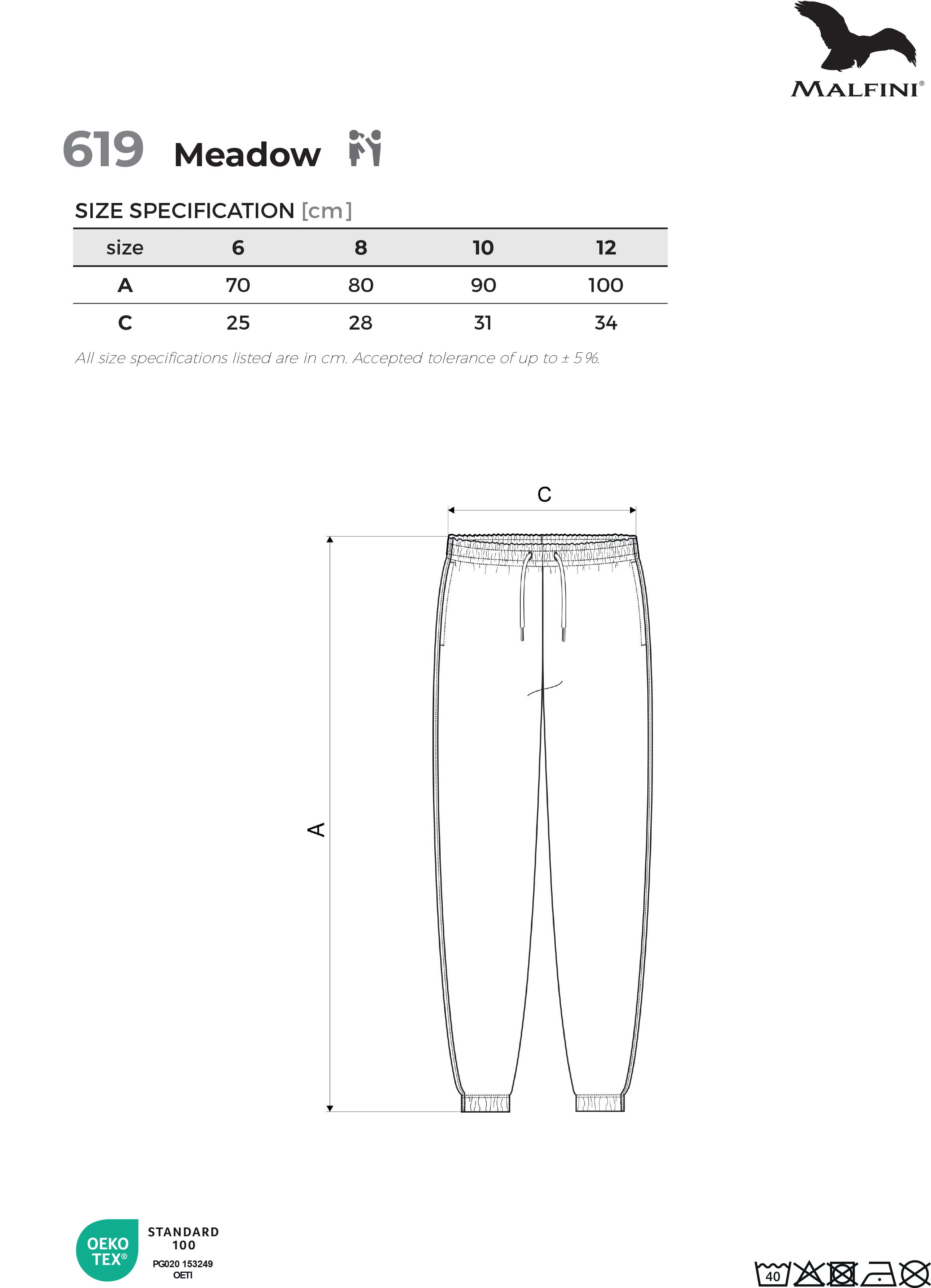 Dětské tepláky Meadow z kvalitní výplňkové pleteniny s počesanou vnitřní stranou poskytují hřejivý, měkký a pohodlný pocit při každodenním nošení. Materiál 60 % bavlna a 40 % polyester (u barvy šedý melír: 75 % bavlna a 25 % polyester) je odolný, příjemný na dotek a vhodný pro časté praní.
