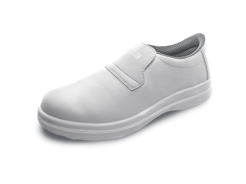 Bezpečnostní mokasíny s antistatickou a protiskluzovou PU podrážkou rezistentní pohonným hmotám, absorpcí energie v patě a svrškem z mikrovlákna s antibakteriální úpravou SANITIZED.