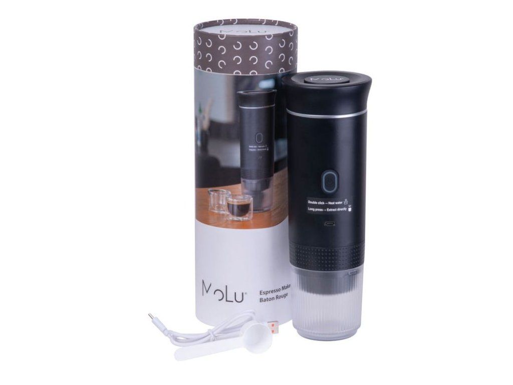 MoLu Baton Rouge 3 v 1 je kompaktní espresso kávovar na cesty s nádrží na 60 ml vody, výkonným ohřevem a odnímatelným držákem kapslí i šálkem.