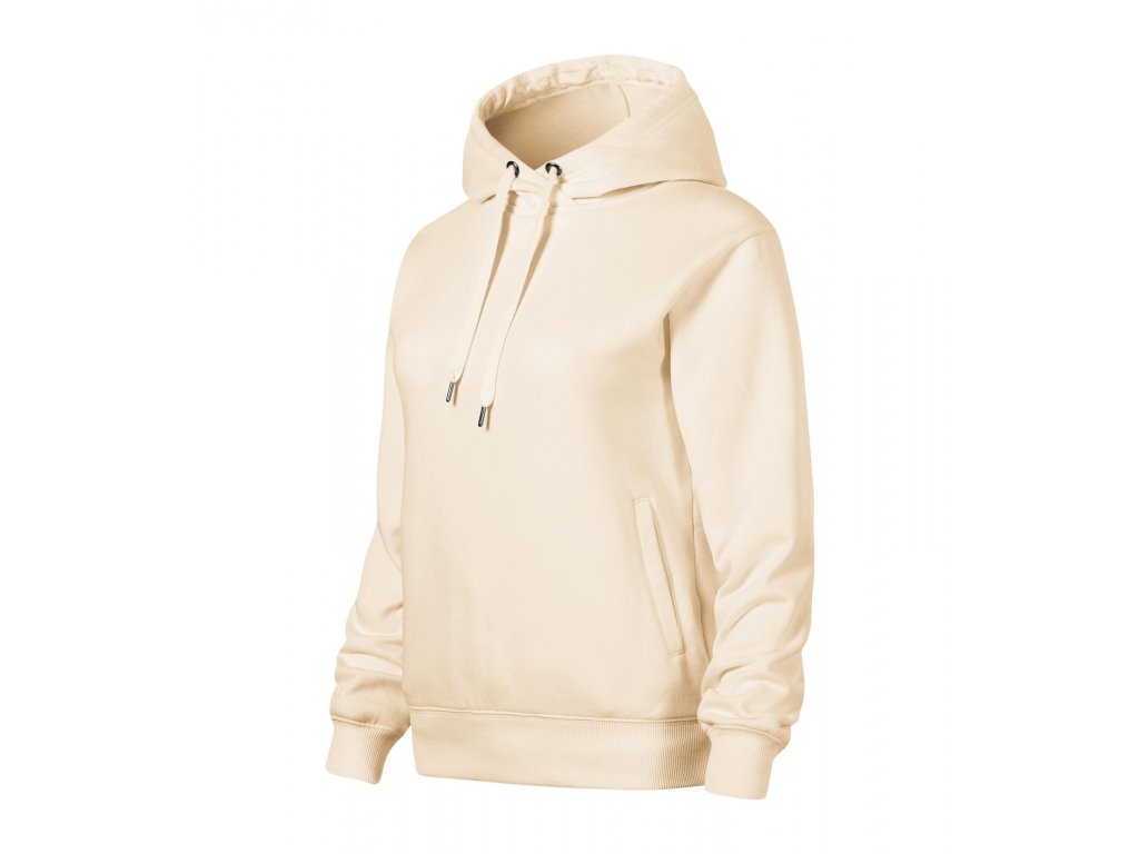volný střih s bočními švy, kapuce s podšívkou na stažení šňůrkou