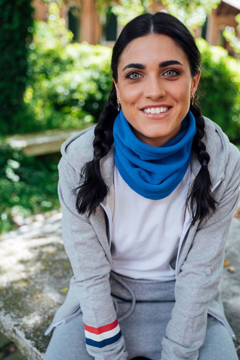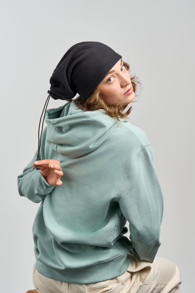 • nastavitelná šňůrka se zarážkou, lehký materiál, regulující vlhkost, lze nosit jako šálu nebo čepici