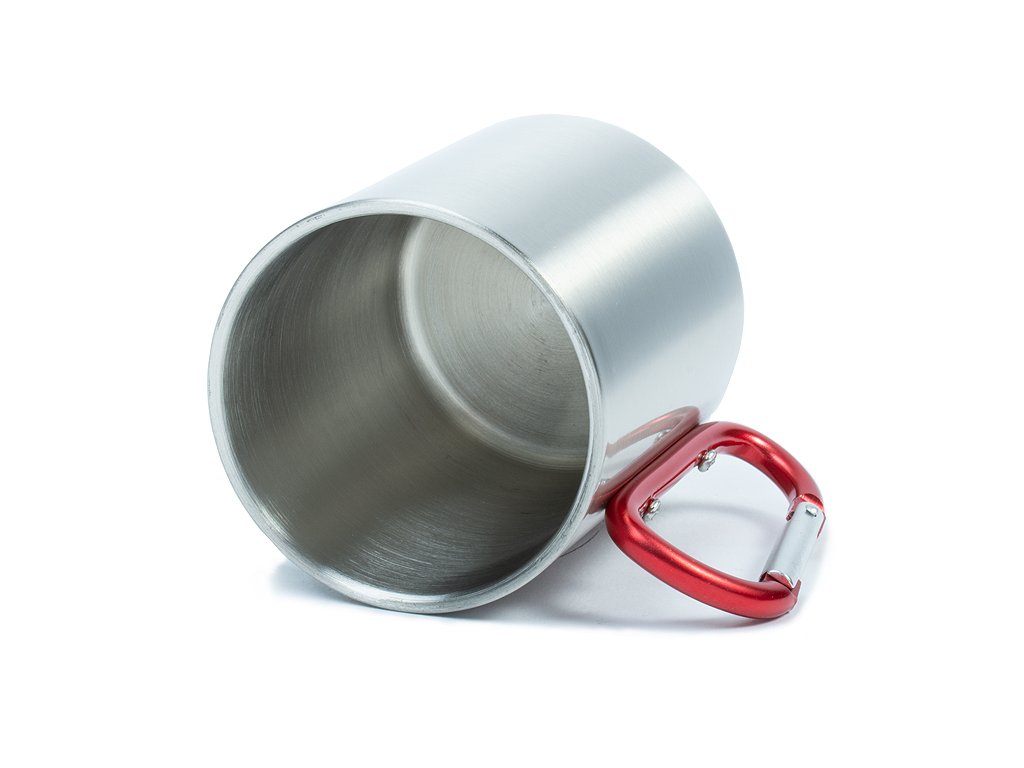 Nerezový hrnek se červenou karabinou