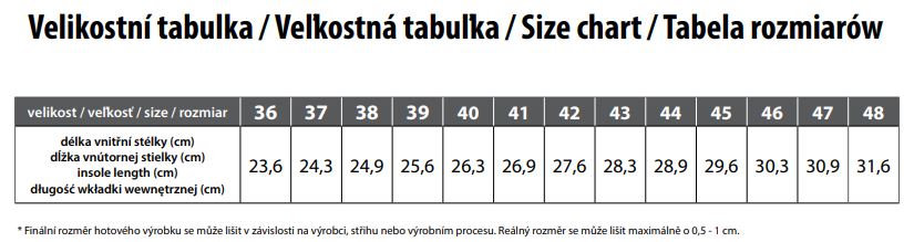 Orientační hmotnost půlpáru ve velikosti 43 je 430 g.