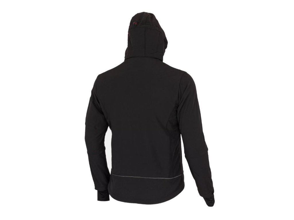 Bunda Rufus je vyrobena ze softshellu – je nepromokavá, odolná vůči větru a nechybí ji reflexní prvky na hrudi a zádech. Díky suchému zipu si můžete nastavit šířku rukávů a pružné manžety s otvorem na palec zajistí, aby vám nefoukalo do rukávů a bylo neustále teplo. Bunda má prodlouženou zádovou délku, aby vás při předklonu ochránila před ofouknutím.