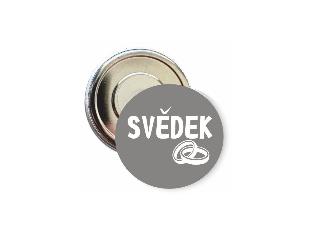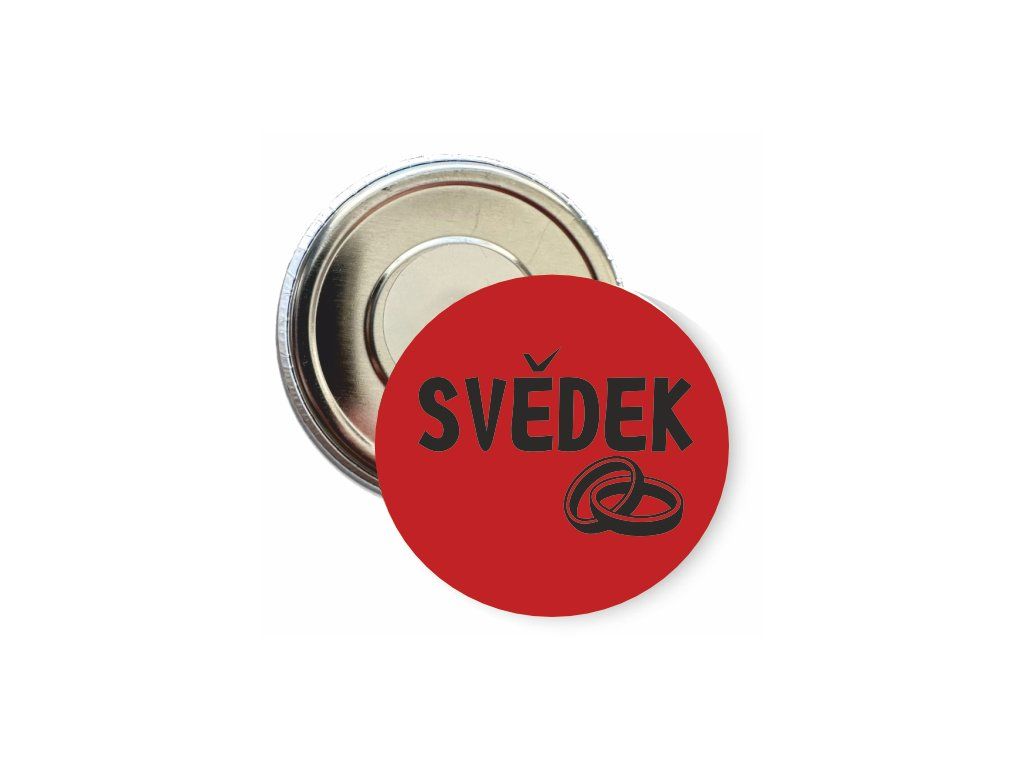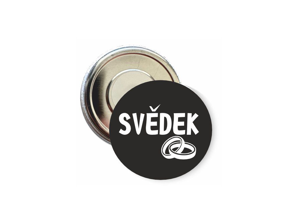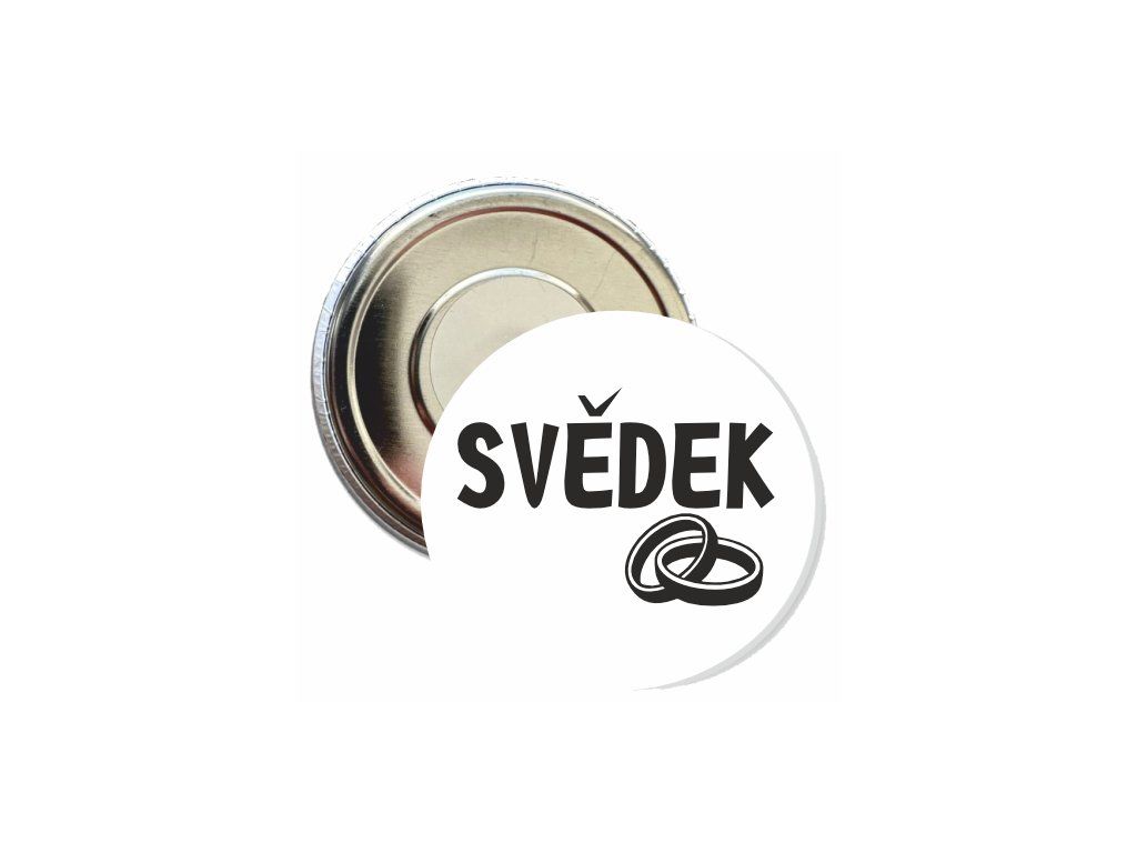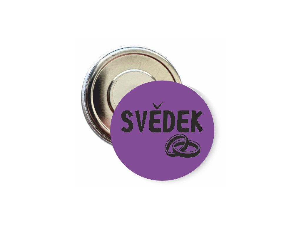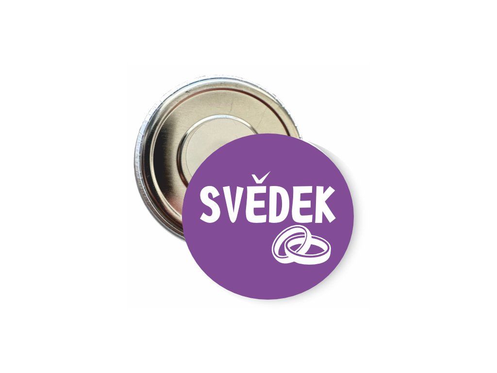Placka s motivem Svědek 50 mm je výrazný doplněk na rozlučku se svobodou i svatební den. Vybrat si můžete variantu se špendlíkem nebo magnetem.