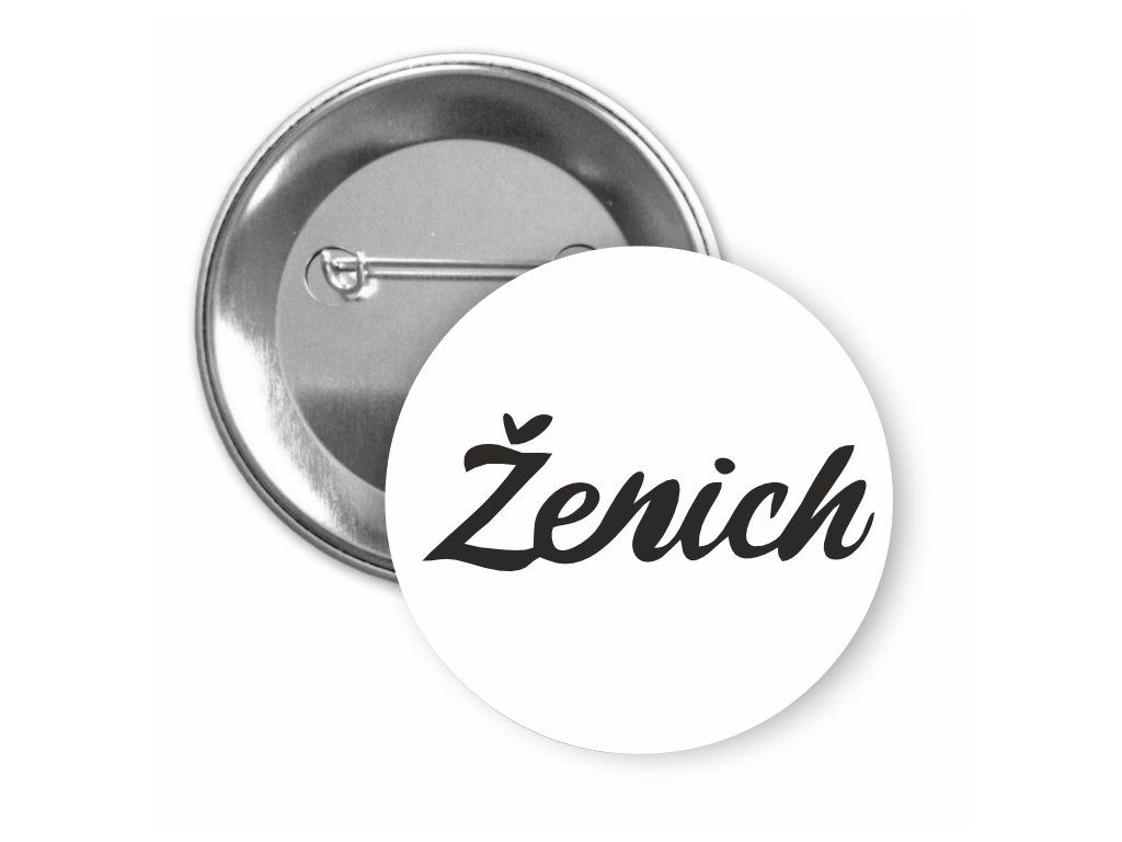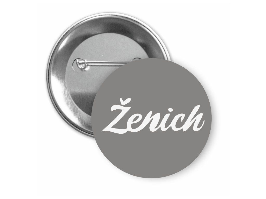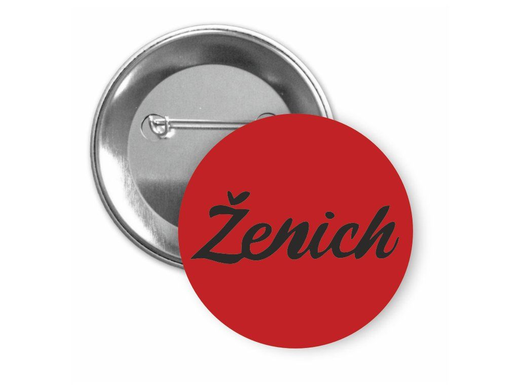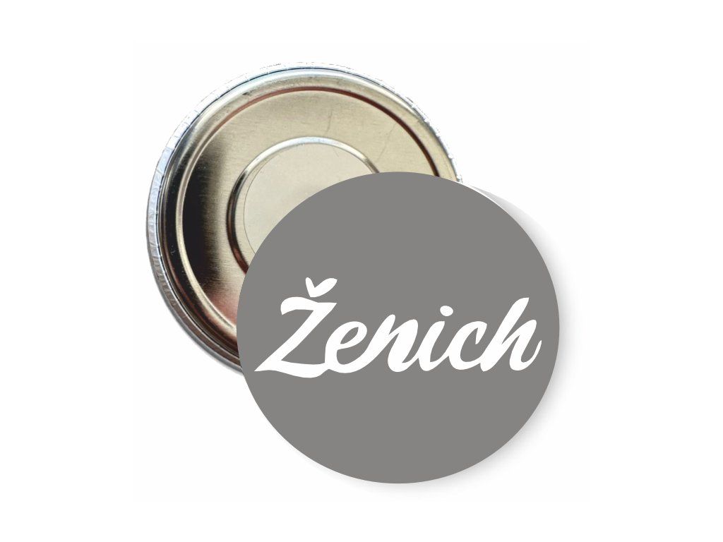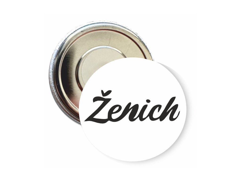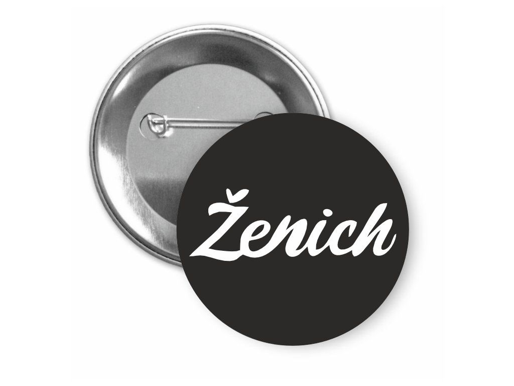 Placka s motivem Ženich 50 mm je výrazný doplněk na rozlučku se svobodou i svatební den. Vybrat si můžete variantu se špendlíkem nebo magnetem.