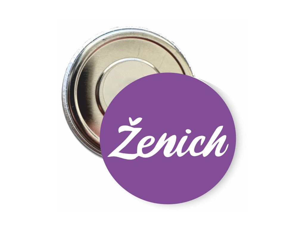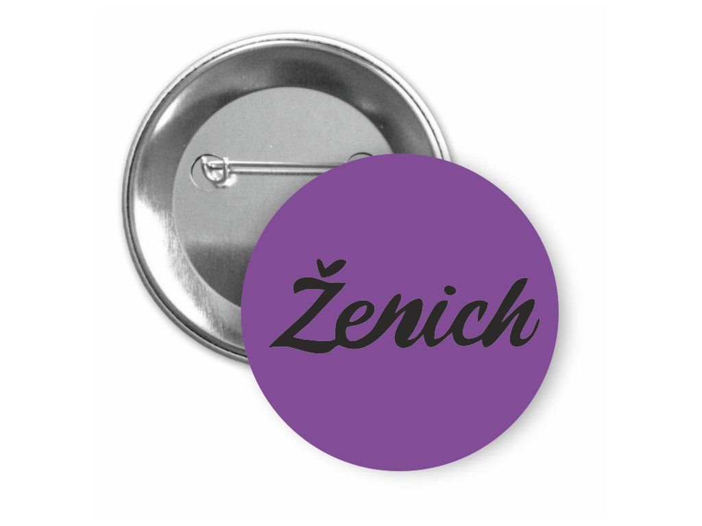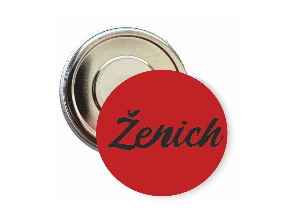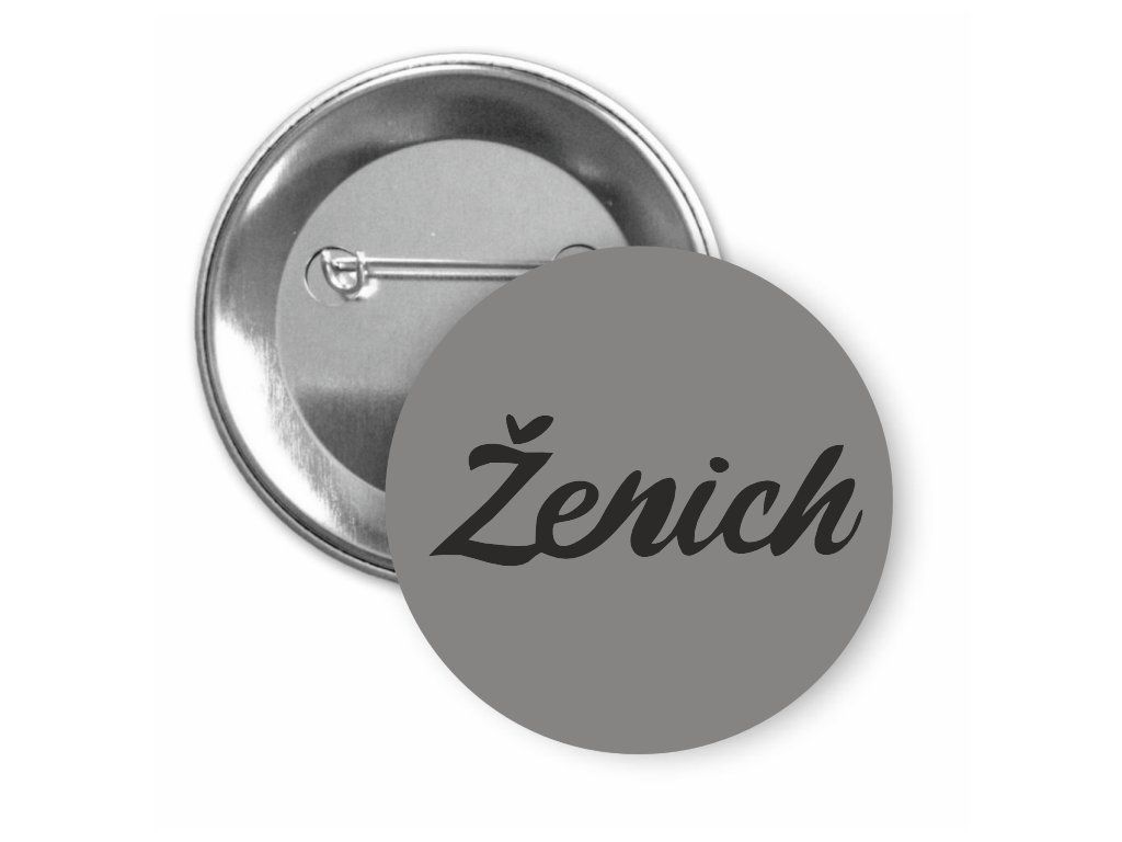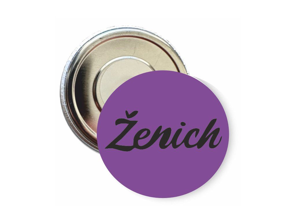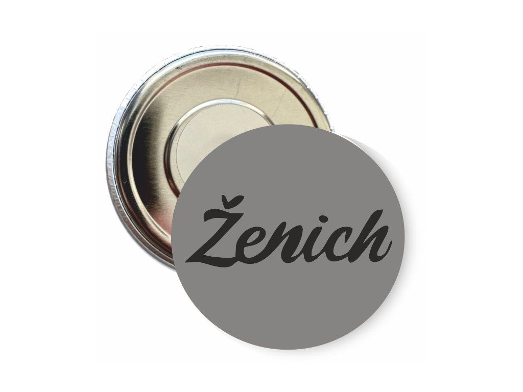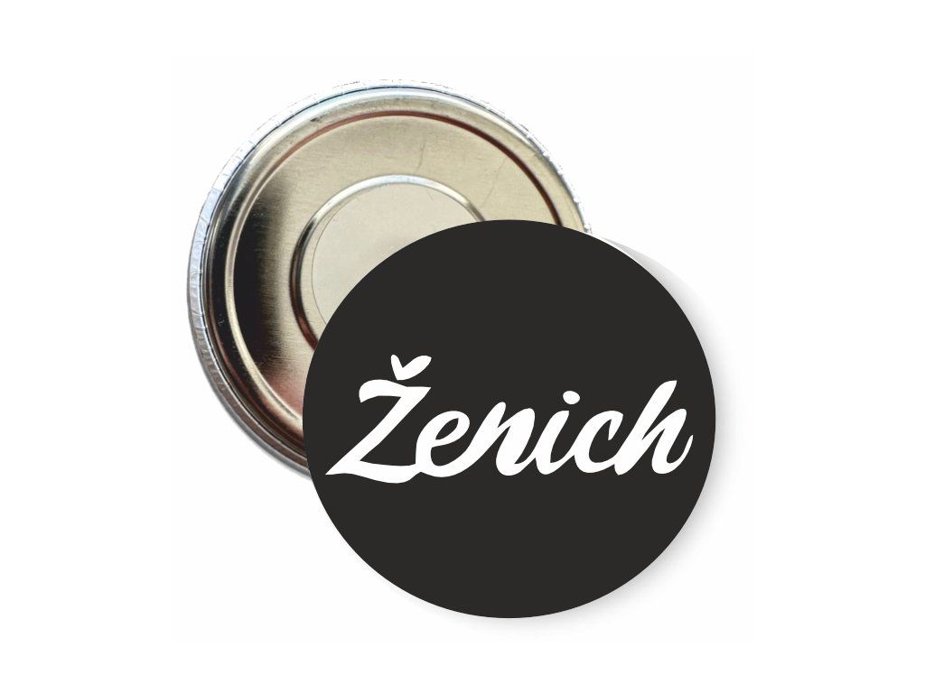 Placka s motivem Ženich 50 mm je výrazný doplněk na rozlučku se svobodou i svatební den. Vybrat si můžete variantu se špendlíkem nebo magnetem.