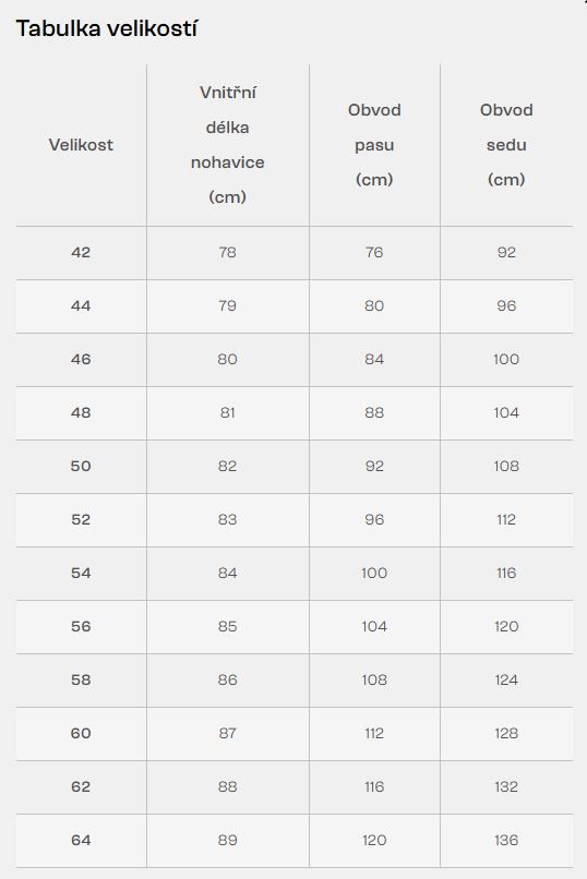 - nastavitelná délka nohavic