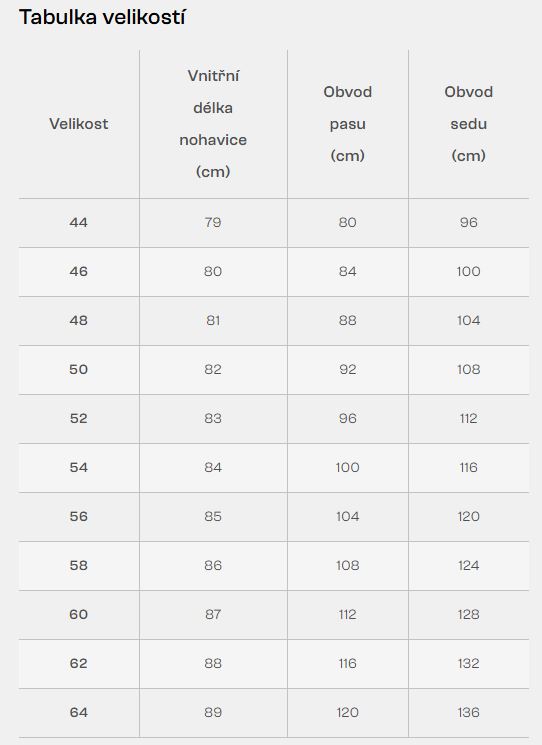 Velikostní tabulku naleznete v souvisejících souborech.