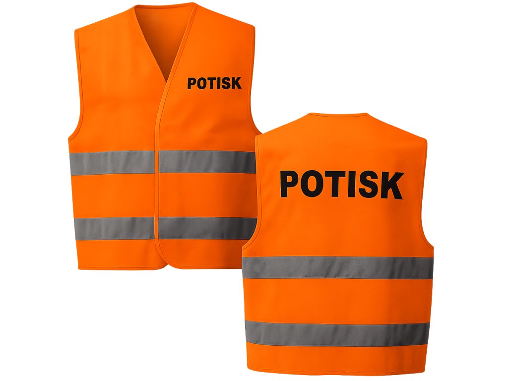 Reflexní vesta s vlastním potiskem na levém prsu o velikosti 8 cm. Ideální pro stavaře a další profese, které vyžadují viditelnost a bezpečnost.