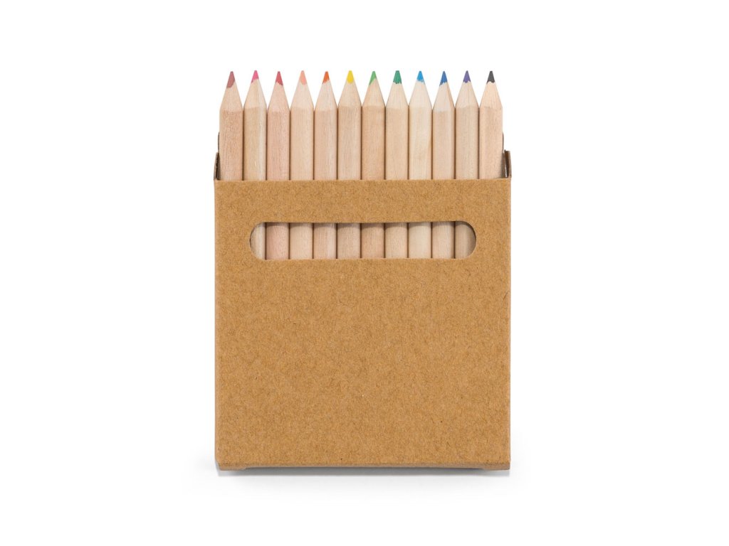 kartonová krabička s 12 malými pastelkami, rozměry 90 x 90 x 9 mm