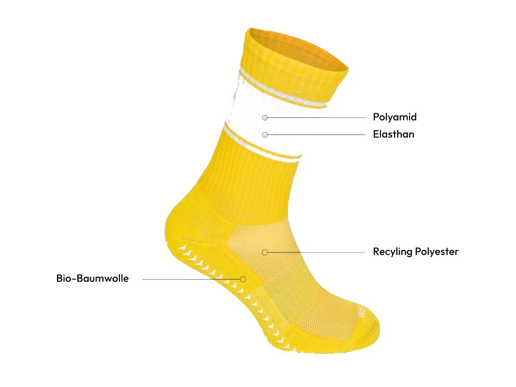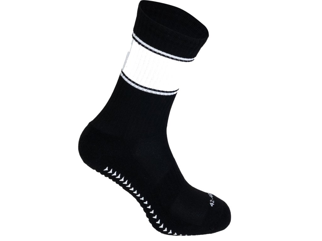 Funkční sportovní ponožky s protiskluzovou úpravou, prodyšným materiálem a podílem bio bavlny, ideální pro sport i aktivní pohyb.