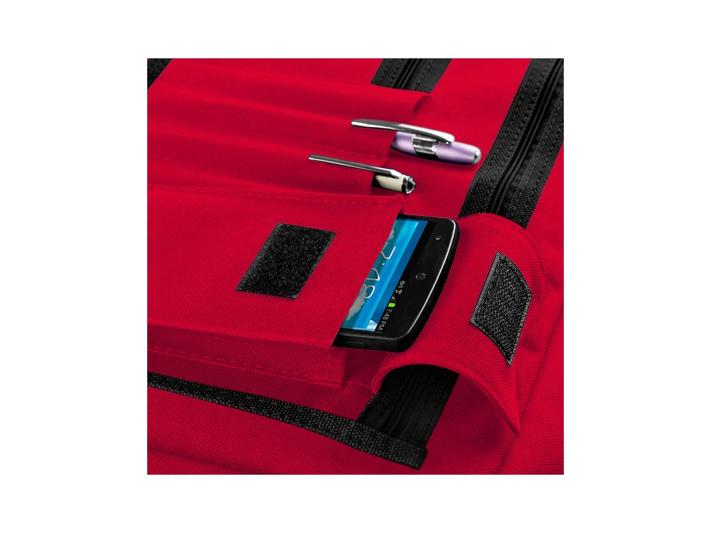hlavní přihrádka na zip, uvnitř organizér, 2 robustní zavírání na klip, držák na klíče