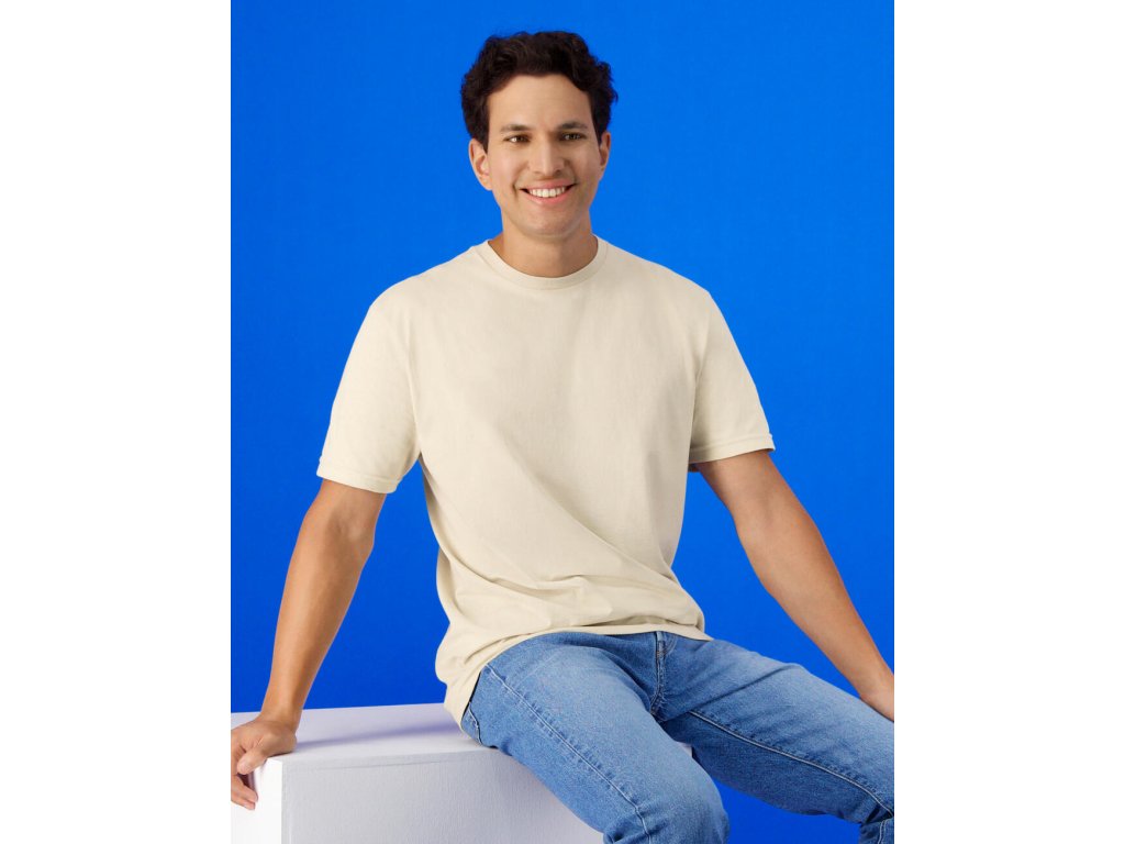 Tenké bavlněné tričko ze 100% americké bavlny o gramáži 150 g/m². Klasický střih bez bočních švů, zpevňující páska od ramene k ramenu a odtrhávací štítek. Ideální pro potisk i každodenní nošení.