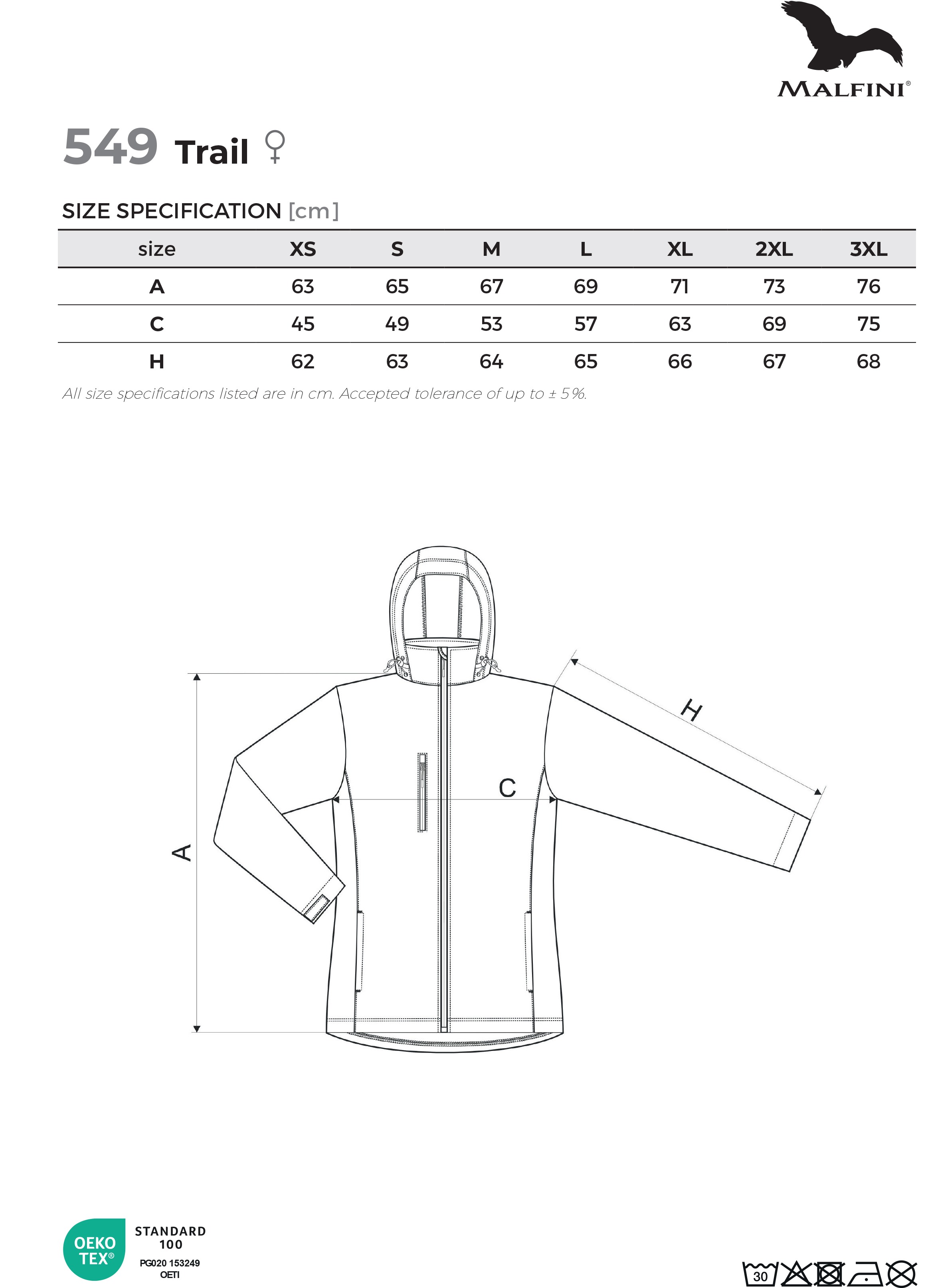Bunda je vyrobená z 2vrstvého softshellu ze směsi 96 % polyesteru a 4 % elastanu v provedení 4-way stretch. Materiál má vodoodpudivou úpravu a vnitřní strana je doplněná o 100% polyesterový microfleece s antipilingovou úpravou. Komfort při nošení zvyšuje celopropínací reverzní spirálový zip s krytkou brady, kapuce a dolní lem na stažení elastickou šňůrkou i nastavitelné lemy rukávů na suchý zip. Praktickou výbavu doplňují kapsy s reverzním spirálovým zipem a náprsní kapsa. Zadní díl je tvarovaný a mírně prodloužený.