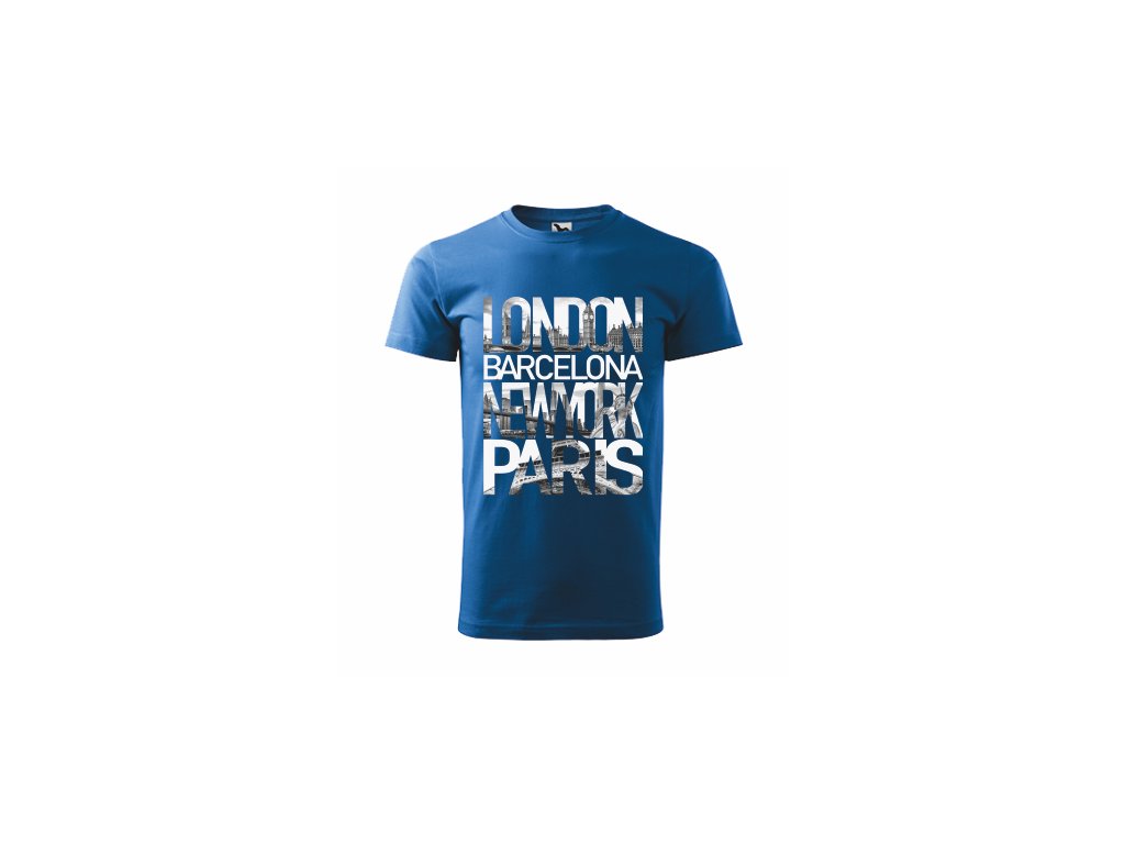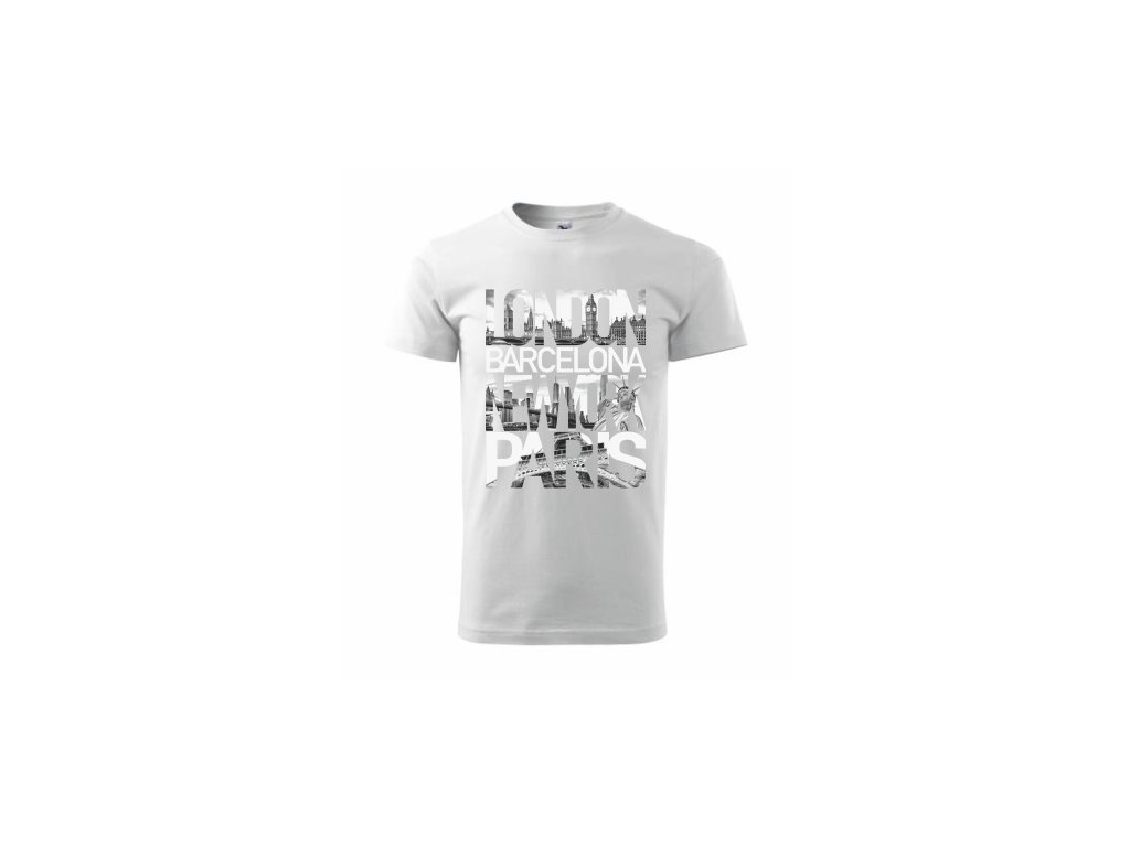 kvalitní tričko s potiskem LONDON BARCELONA NEW YORK PARIS