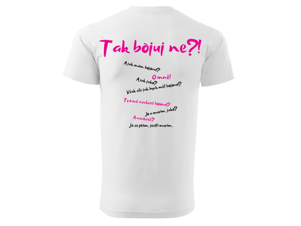 Tričko s hláškou „TAK BOJUJ NE?“ – celý rozhovor na zádech - pohodlí, kvalita a humor v jednom.