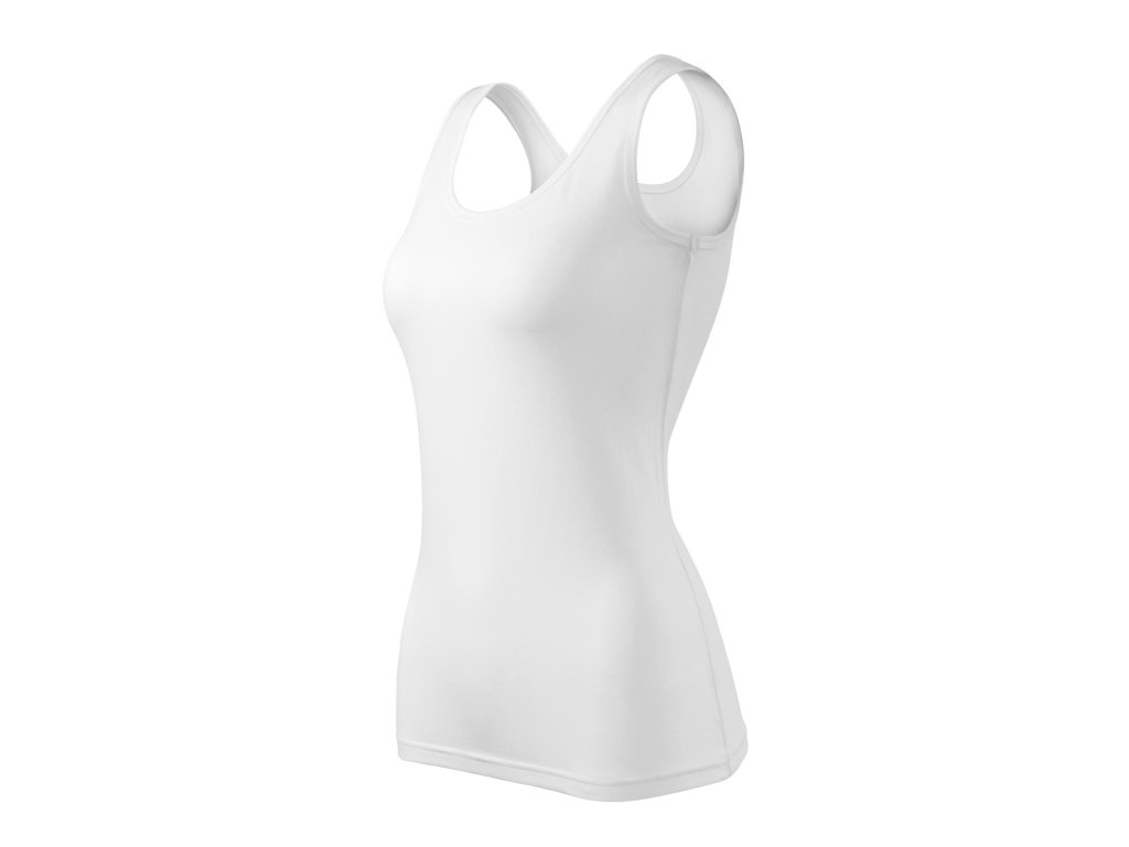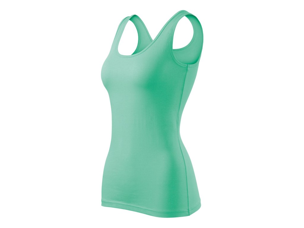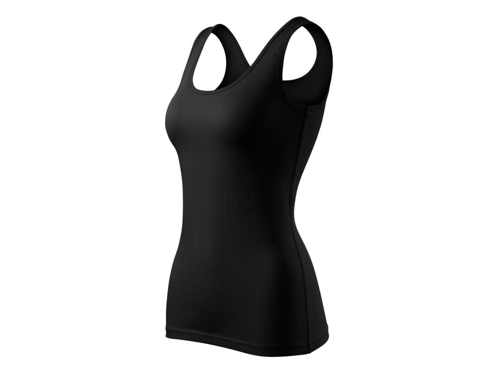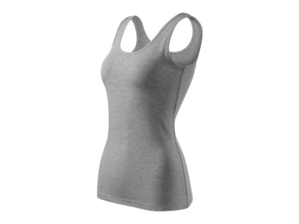 přiléhavý střih s bočními švy, hlubší kulatý výstřih