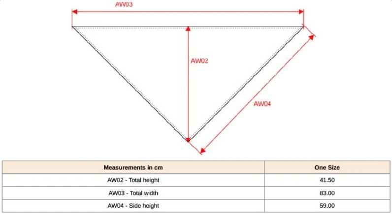 Šátek KP064 Fiesta je vyroben z lehké směsi polyesteru a bavlny (80 % polyester, 20 % bavlna) s gramáží 95 g/m². Odolná a pružná tkanina se příjemně přizpůsobí pohybu a zachová tvar i po opakovaném praní. Otevřené válcované lemy a jednoduchý šev zajišťují dlouhou životnost a čistý vzhled. Rozměry 83 × 62 × 62 cm poskytují dostatek látky pro různé způsoby uvázání i pro výrazný potisk.