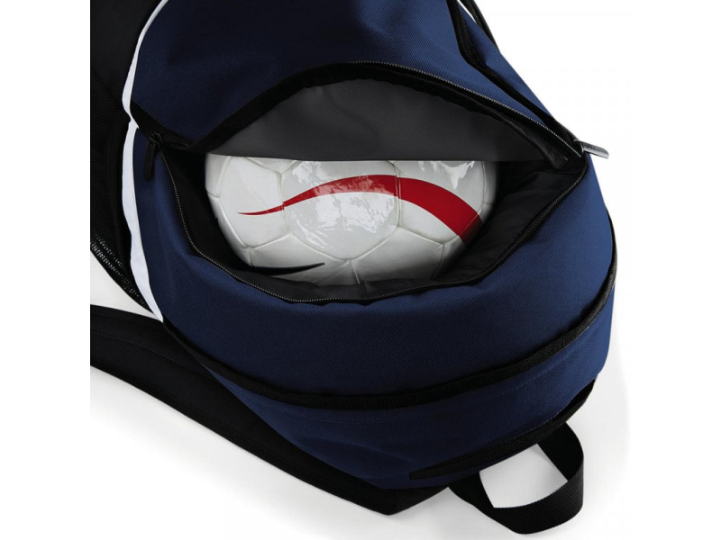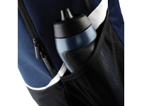 Praktické uspořádání zahrnuje samostatnou kapsu na zip pro mokré oblečení nebo míč, boční kapsu na zip, elastickou síťovanou boční kapsu a držák na láhev. Díky objemu 17 litrů je batoh ideální pro tréninky, zápasy i každodenní použití. Batoh je vhodný pro personalizaci – umožňuje potisk i vyšívání, což z něj činí ideální volbu pro týmovou nebo reklamní prezentaci.