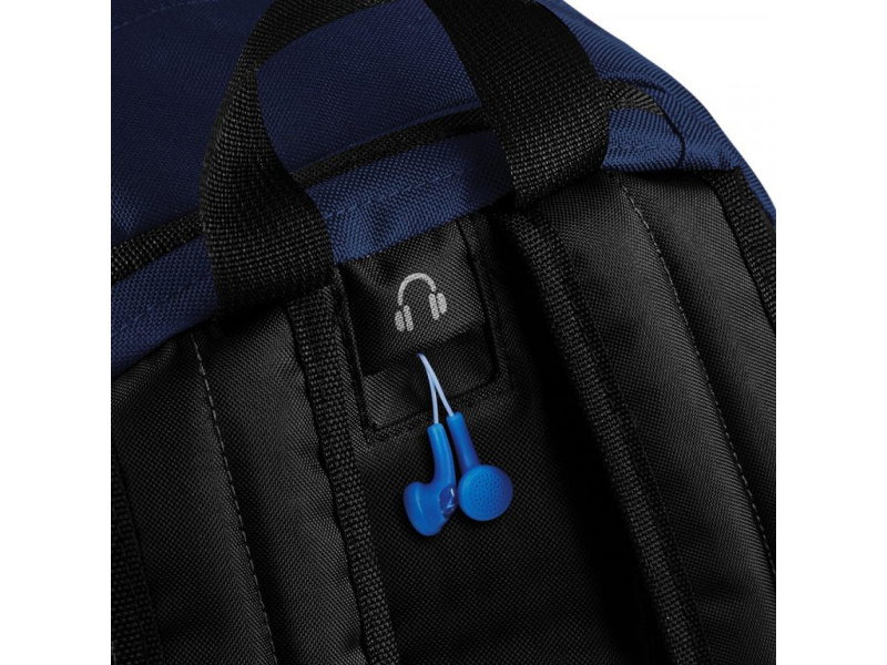Batoh je vyroben ze 100% polyesteru v kombinaci materiálů 600D a 420D, které zajišťují dlouhou životnost i při každodenním používání. Polstrované ramenní popruhy a polstrovaný zadní panel zvyšují pohodlí při nošení, zatímco pevné držadlo umožňuje snadné přenášení v ruce. Batoh je vybaven vývodem pro sluchátka a speciální kapsou na elektronická zařízení.
