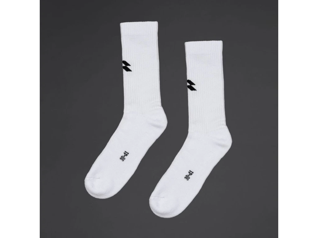 Kombinace bavlny, polyesteru a elastanu spojuje příjemný omak, pružnost a odolnost. Ponožky mají prodyšnou část chodidla, polstrované zóny pro lepší tlumení, bezešvou špičku a žebrovanou manžetu do poloviny lýtka. Přední žakárový detail s logem doplňuje čistý sportovně laděný.