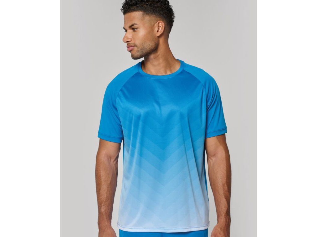 Unisex sportovní tričko s barevným gradientem ze 100% polyesteru. Lehké, prodyšné a ideální na sport i každodenní nošení.