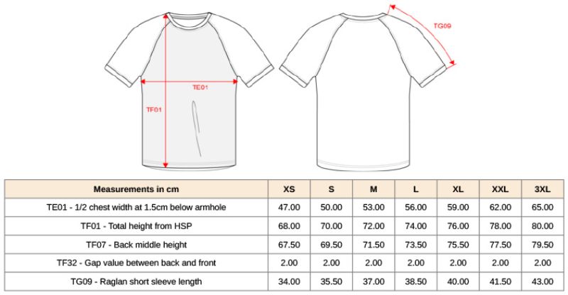 Tričko má klasický unisex střih s raglánovými rukávy.